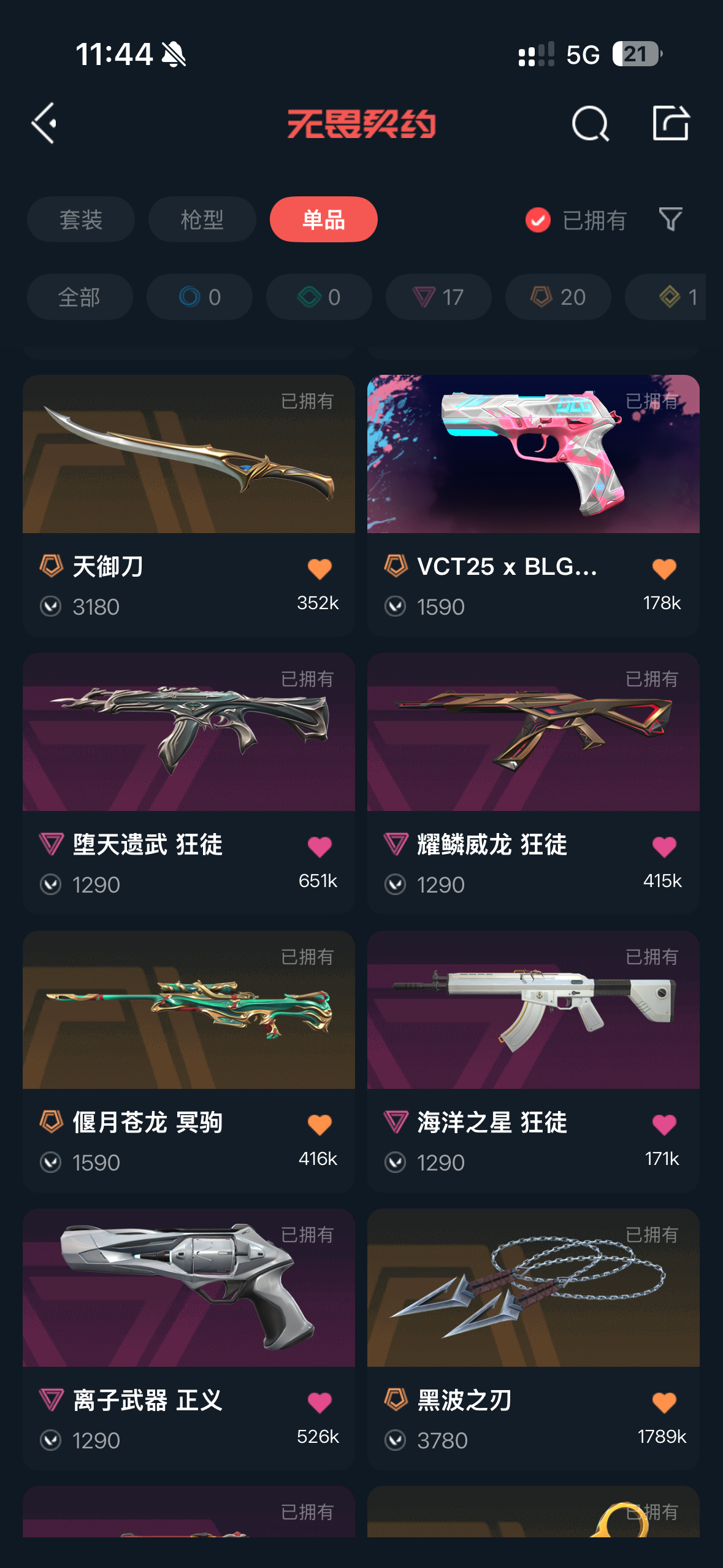 刀 22套,苍龙之刃,黑波,太刀,天御刀,影钩,紫金爪,暗夜诡镰 ak 塑水,盖亚,混沌,紫金,显卡,离子,般若,弃王,威龙,海洋,盖世英雄 m4 蛇年,侦察,般若,22冠军;黑波之刃,5周年//公测重制版 苍龙之刃,紫金爪刀,盖亚的复仇 狂徒,掠影 戍卫,异鳞魔蛇 幻影,侦察力量 幻影,