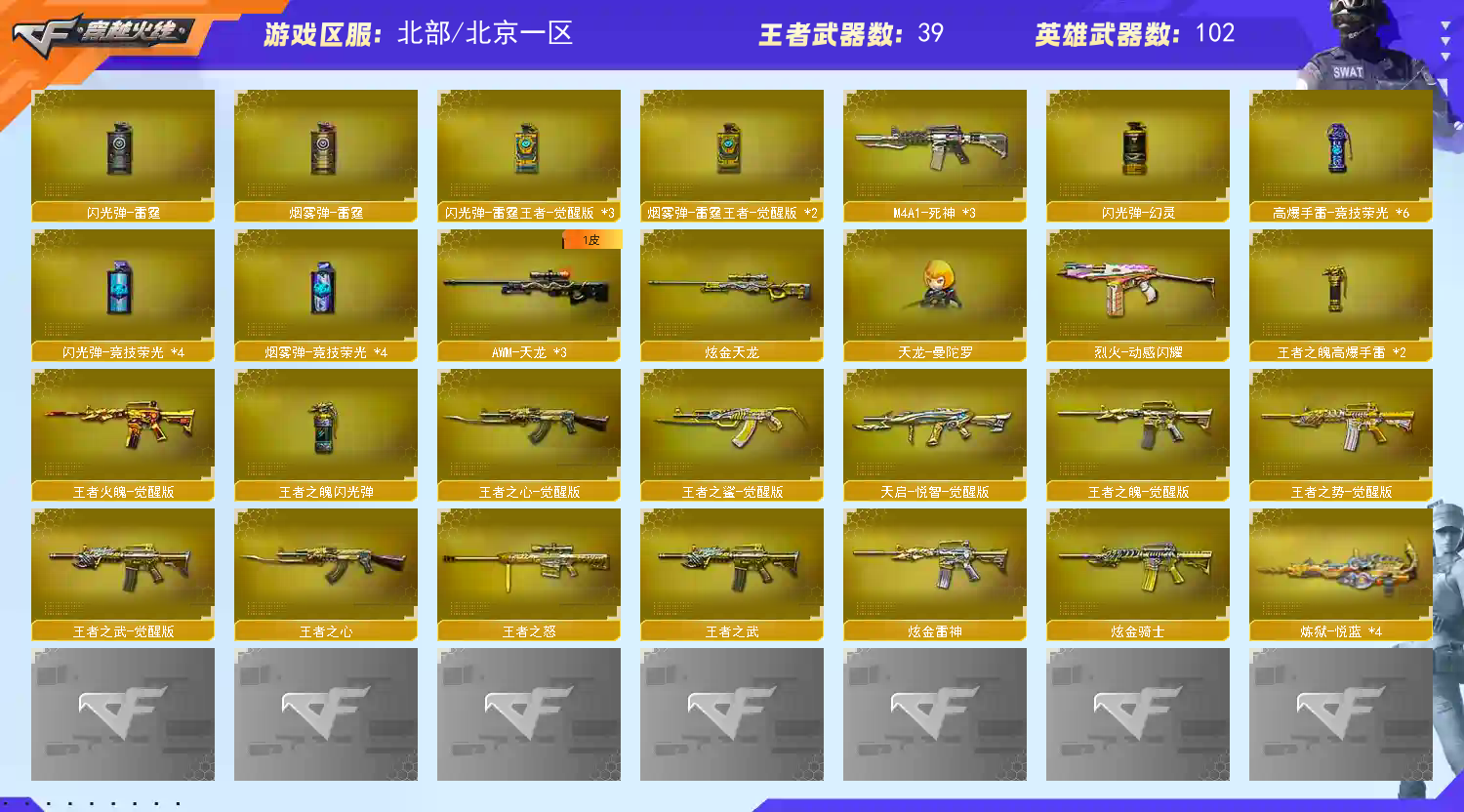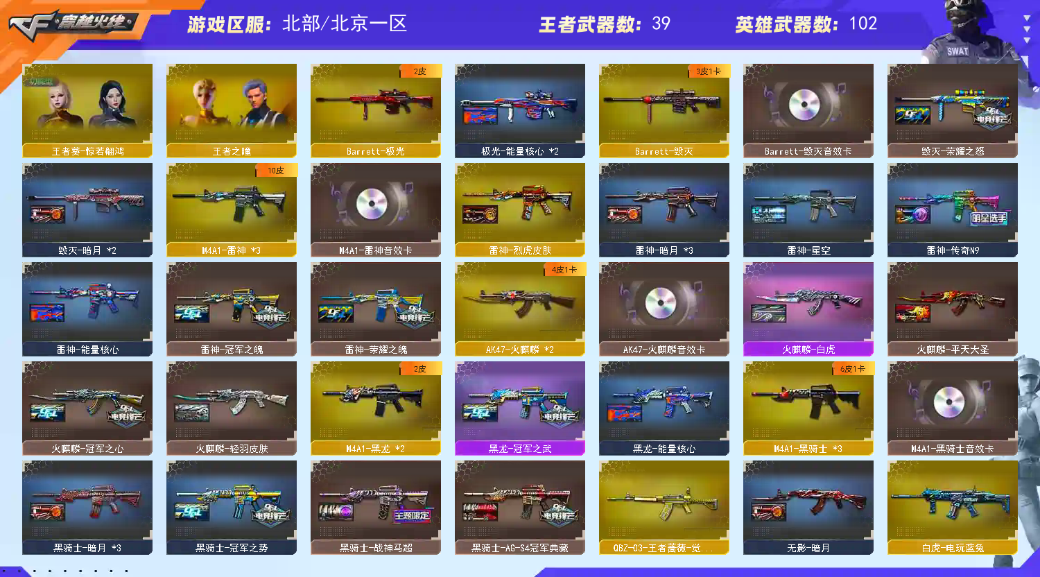 首页 > 租号大厅 > 穿越火线 > 网通区/北京一区 > 【北.部】极品三传说♥幻神冠军三件套冠军之特usp雷暴♥王者星神♥qbz冠军王者风神幻神貂蝉魅影等