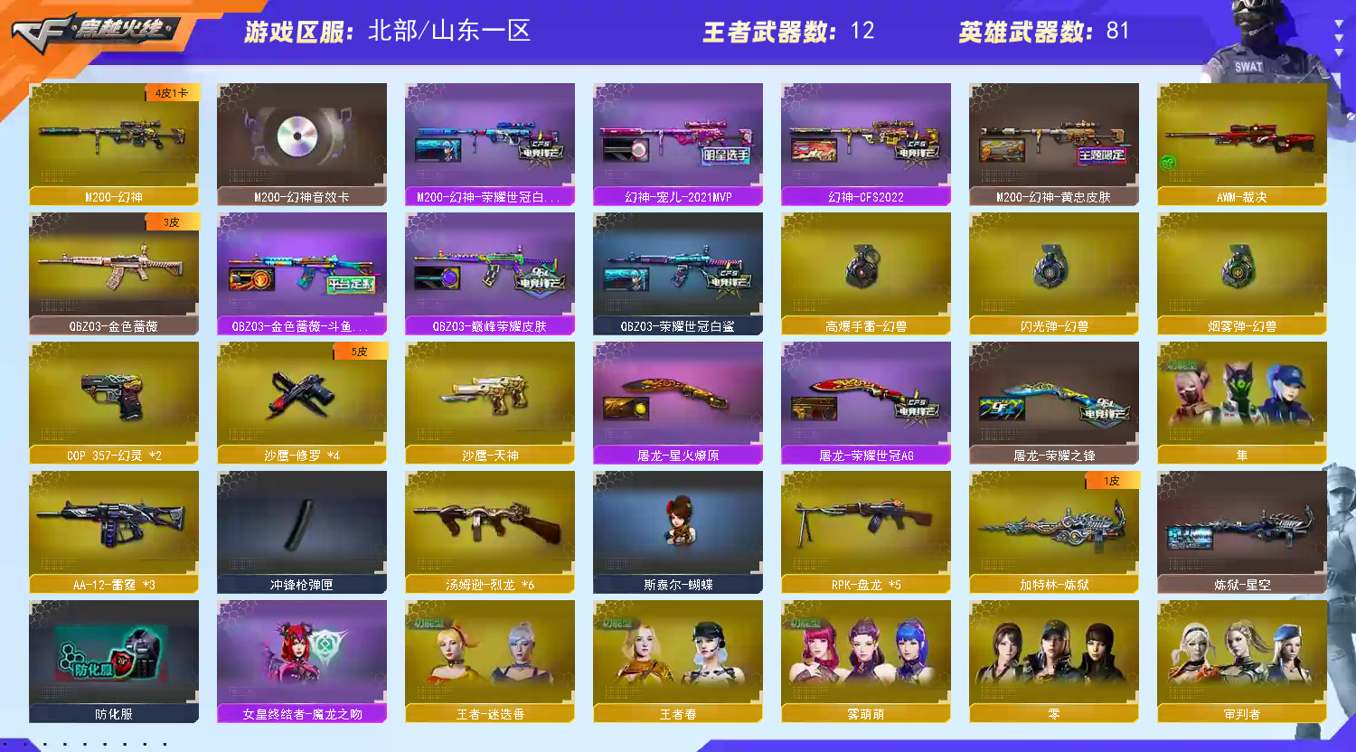 【北.部】98v【幻兽套】幻神宠儿/世冠白鲨/2022/④皮幻神音效卡六列斯太尔蝴蝶六盘炼狱双全;隼,RPK-盘龙,QBZ03-金色蔷薇,M200-幻神,