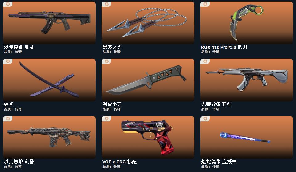禁止炸鱼!冻结秒解。黑波之刃,rgx显卡爪刀,剥皮小刀,雷切,混沌,盖亚,光荣,离子,威龙,海洋ak,流脓m4,edg标配,很多好皮肤自己看