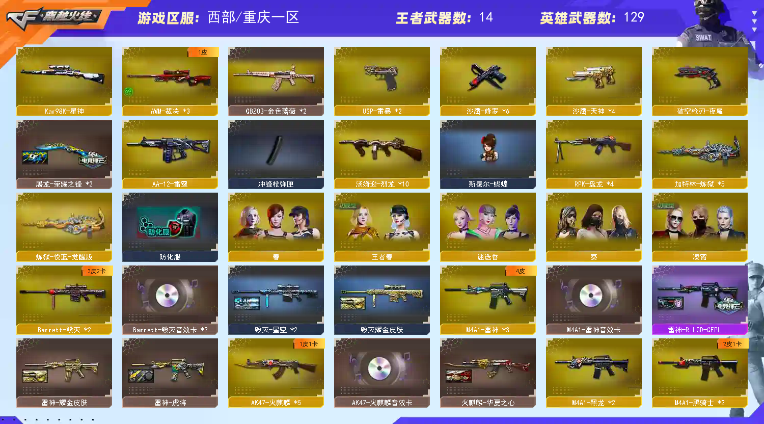 • 游戏区服:穿越火线 / 电信区 / 重庆一区