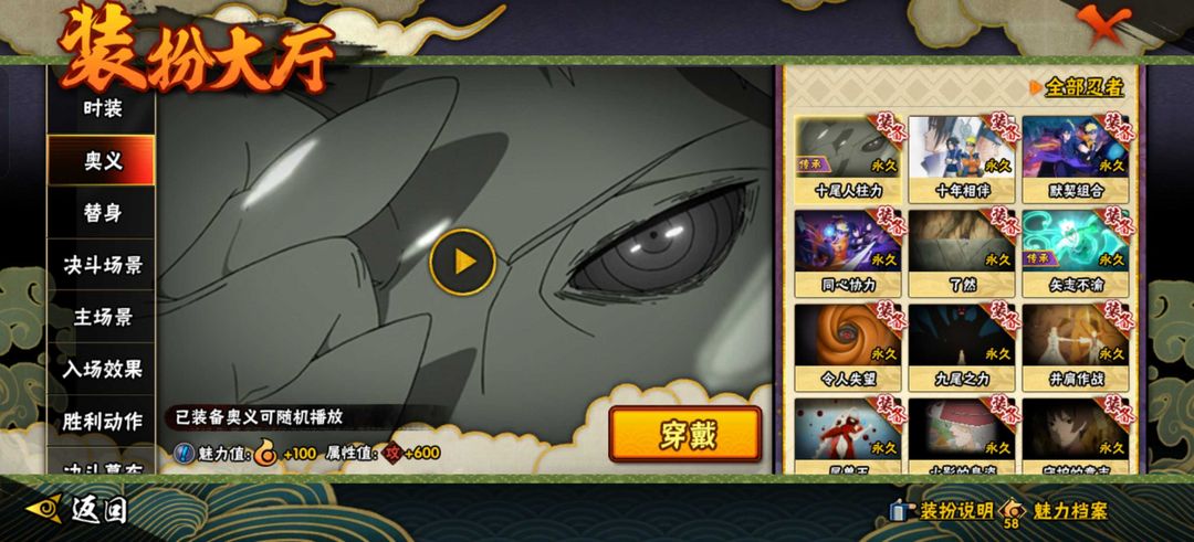 带土已秒+648奥义✨56S✨87A✨3400w战✨全通灵近全忍者✨高魅力值决斗场无压力