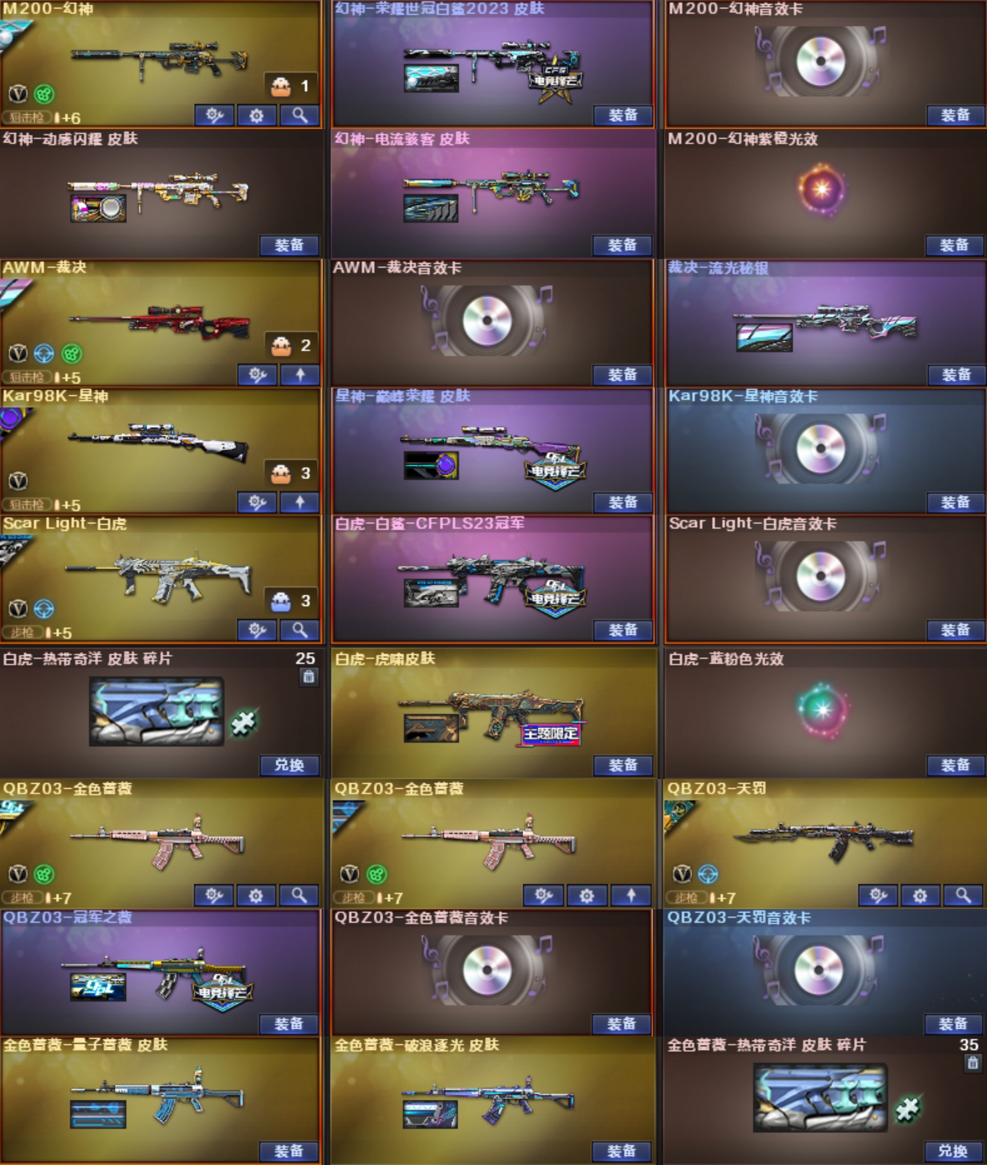 5套幻兽炼狱泡泡象5蝴蝶刀影煞6烈6盘异变镇魔者蝴蝶♥幻神音效卡3皮裁决音效卡流光白虎白鲨QBZ冠薇