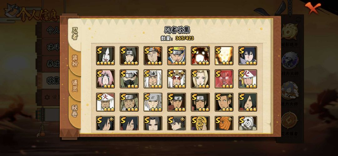 漂泊全系列,侠隐全系列, 爱情哥,黑绝,泳装小南,忍战艾,新春止水,漂泊再不斩已秒 高攻击 55魅力 365忍者新忍者基本都有 如遇顶号是上位租客顶的,顶回去就好了