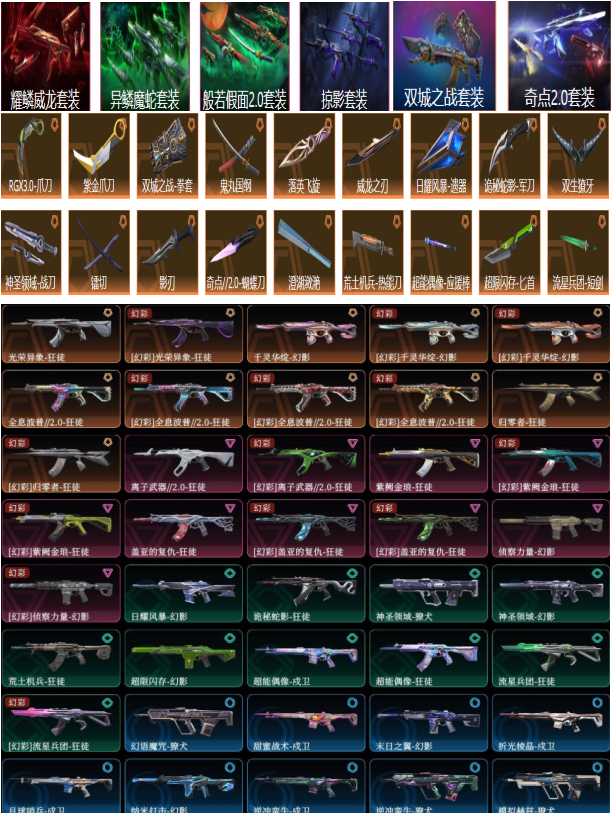 极品18刀⚡显卡爪紫金樱花幻彩蝴蝶镭切套装:奇点威龙魔蛇假面掠影双城⚡狂徒盖亚紫金归零侦查幻影樱花;紫金爪刀,镭切,威龙之刃,盖亚的复仇 狂徒,掠影 戍卫,掠影 狂徒,异鳞魔蛇 幻影,