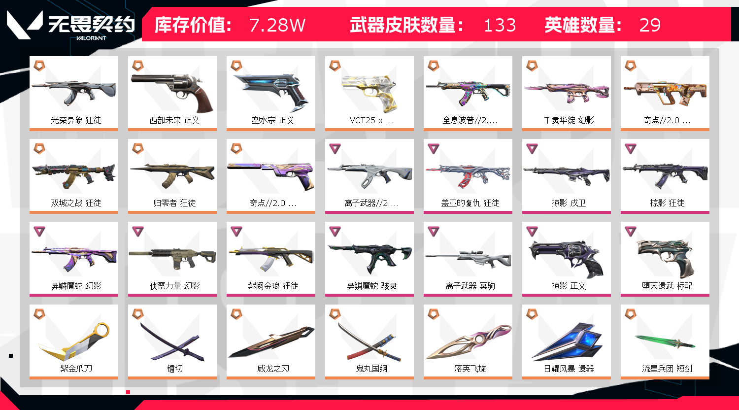• 武器皮肤数量: 133