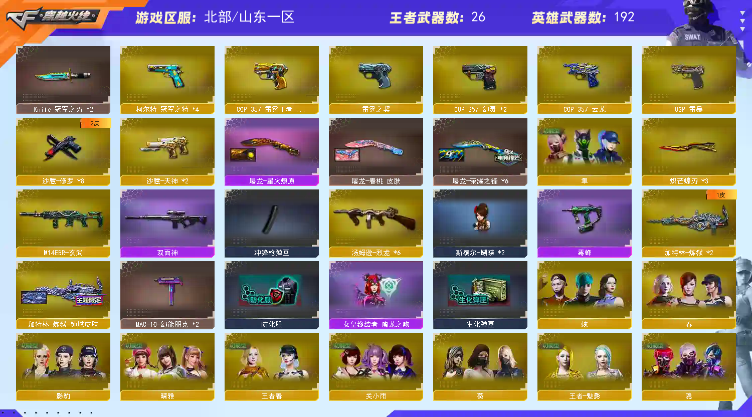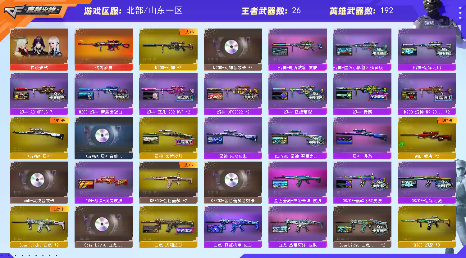 【北部】传说影煞⭐幻神星火宠儿13皮+音⭐星神4皮音⭐usp雷暴cop5冠特4⭐冠军全套皮肤