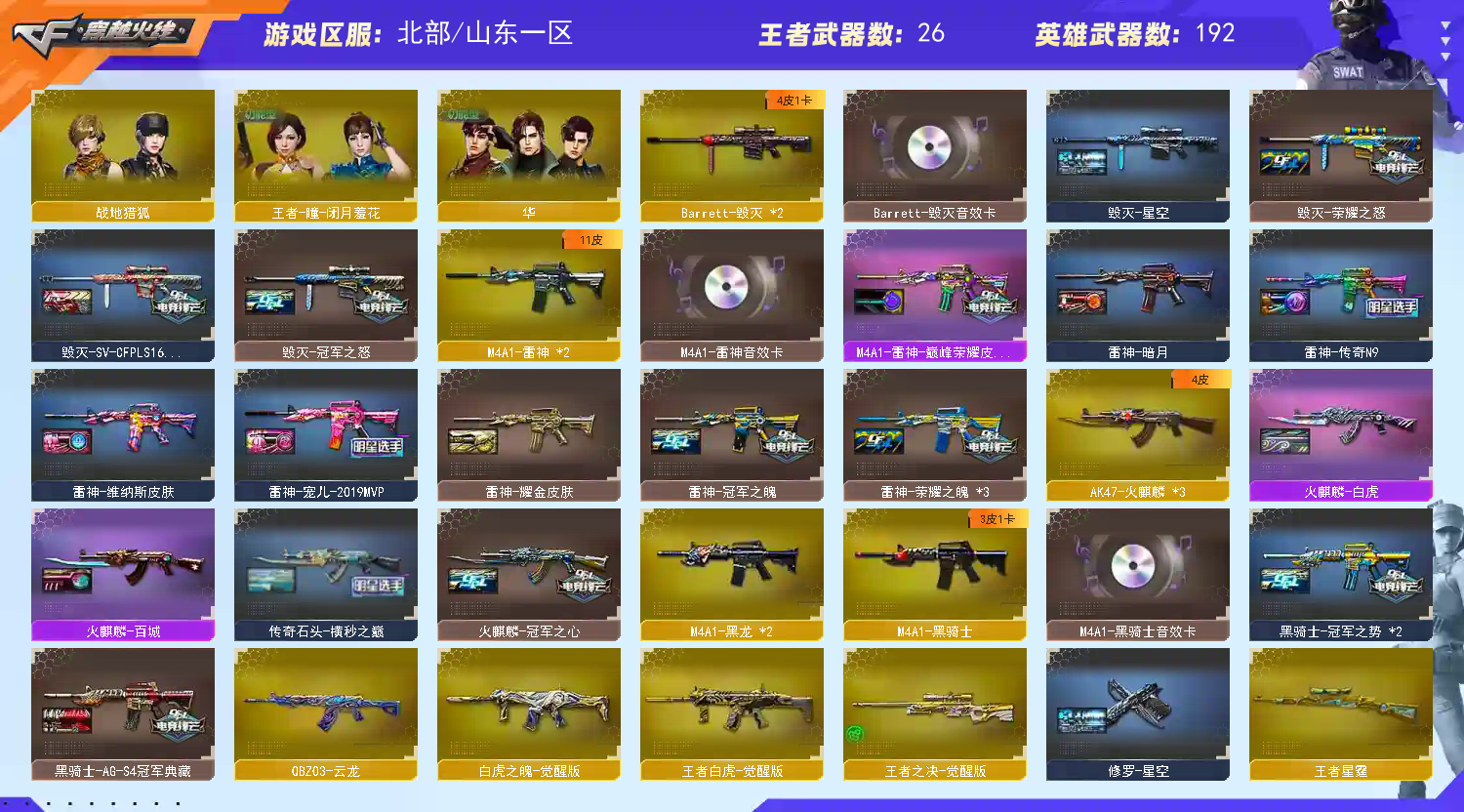 首页 > 租号大厅 > 穿越火线 > 网通区/山东一区 > 【北部】传说影煞⭐幻神星火宠儿13皮+音⭐星神4皮音⭐usp雷暴cop5冠特4⭐冠军全套皮肤