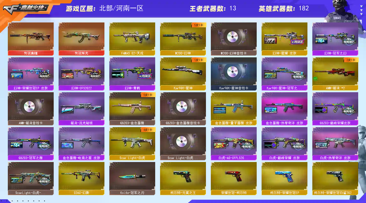 首页 > 租号大厅 > 穿越火线 > 网通区/河南一区 > 传说幽瞳-幻神星耀冠军4皮带音♥冠军之星三件套-法玛斯♥裁决流光秘银带音效-满配副武♥蝶刃x2