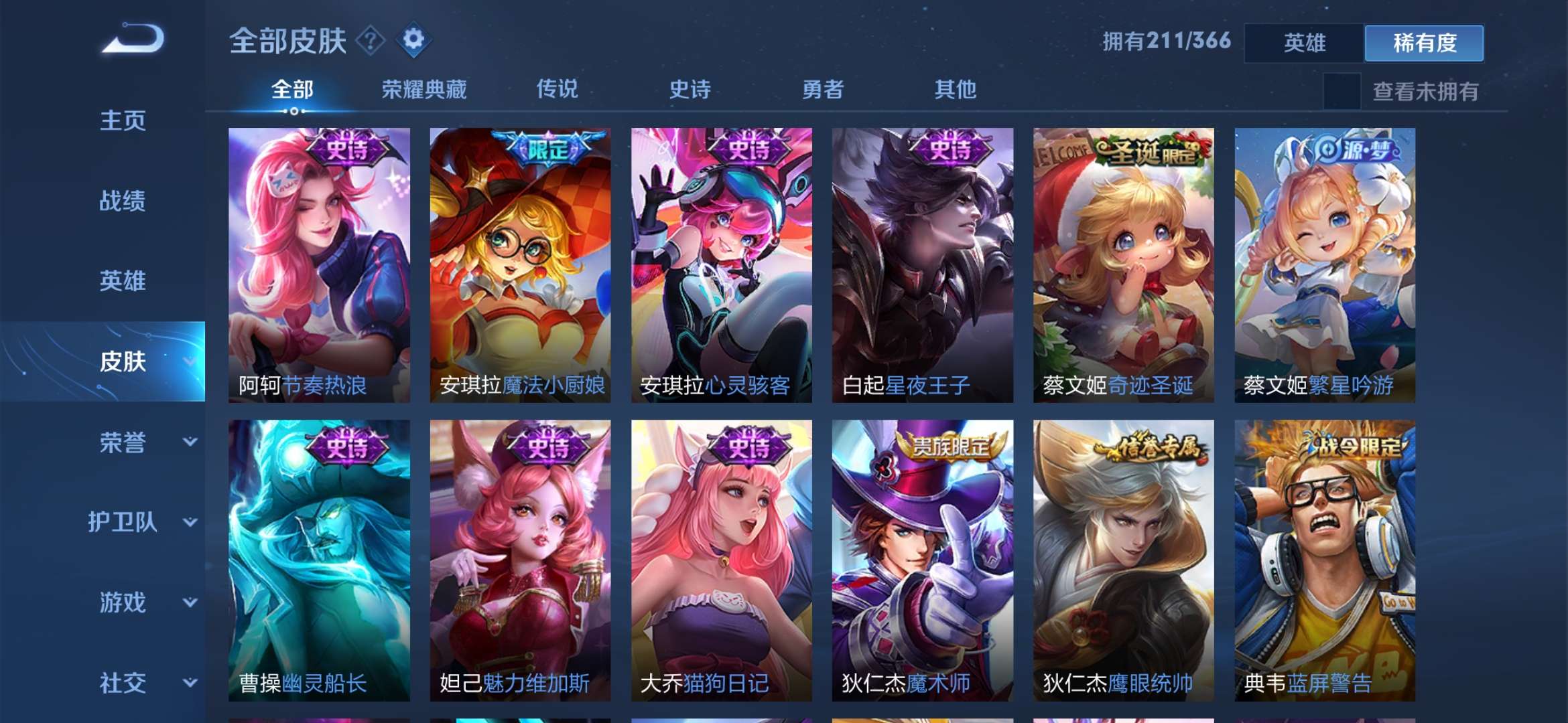 758皮肤♥皮肤共享道具多♥新皮肤已秒🎁无双荣耀v10V11v12 🎁满英雄🎃满荣耀皮肤,满铭文,安卓QQ230区。顶级神号装逼号牛逼(白菜)上不去