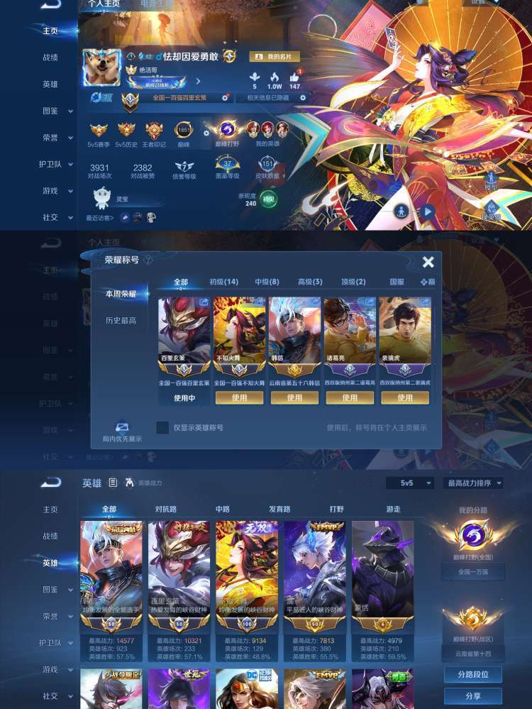 2月在榜全国标双小国服100强玄策/100强不知火舞❤️历史小国韩信❤️弑枪猎影❤️可排禁巅