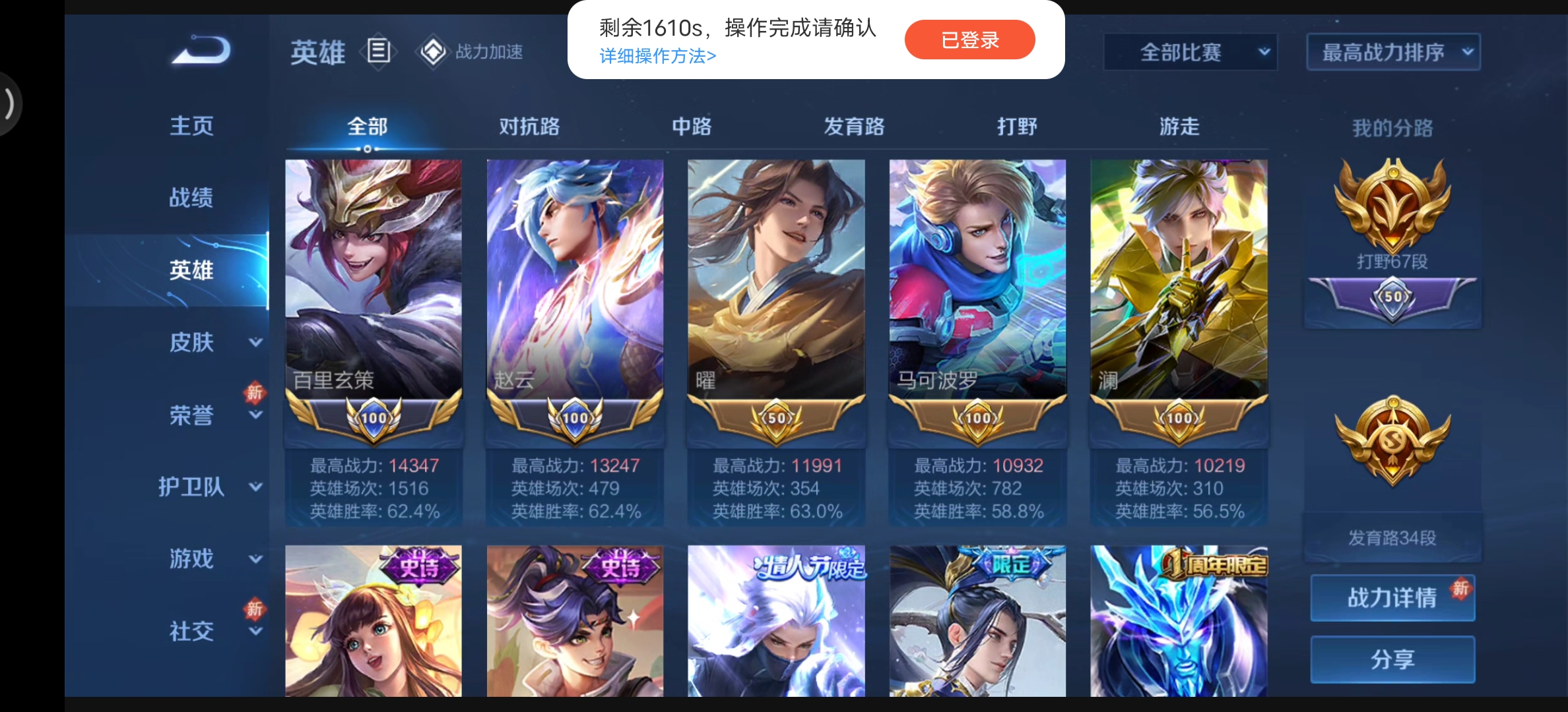 【非云直上】V10★皮肤榜一★539皮满典藏★鲁班时之奇旅会员★虞姬黛羽霜翎星元★吕布白金战神★全能大师★多金标★个性按键