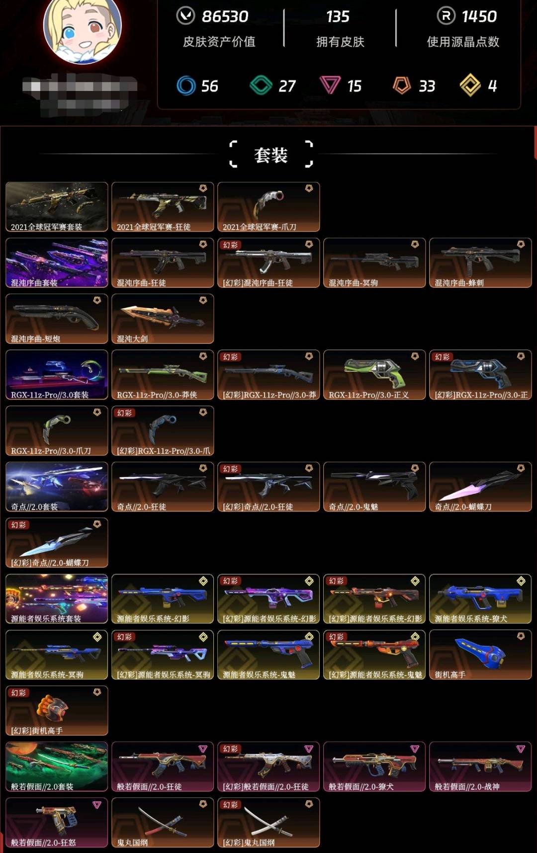 • 皮肤资产价值: 86530