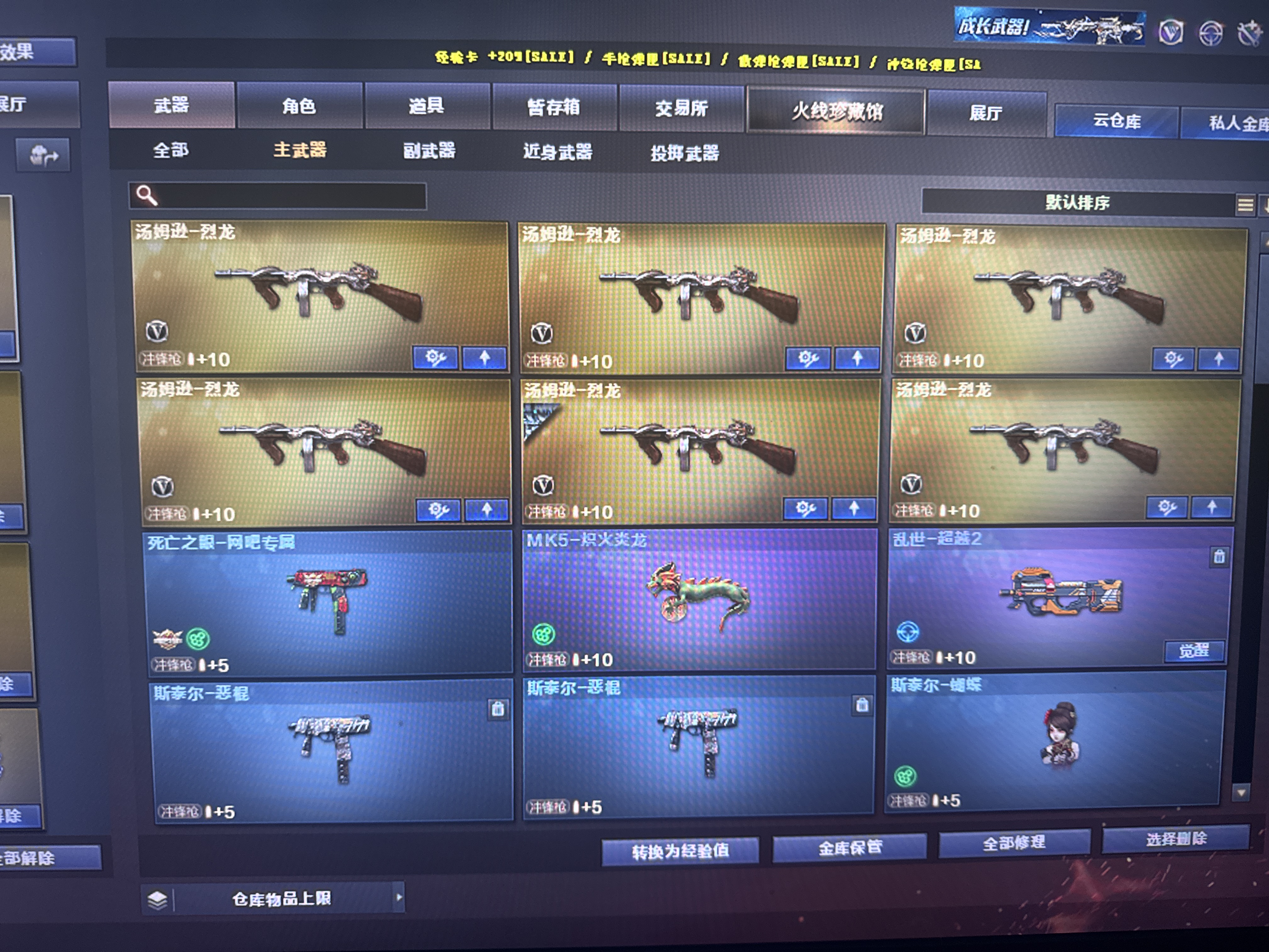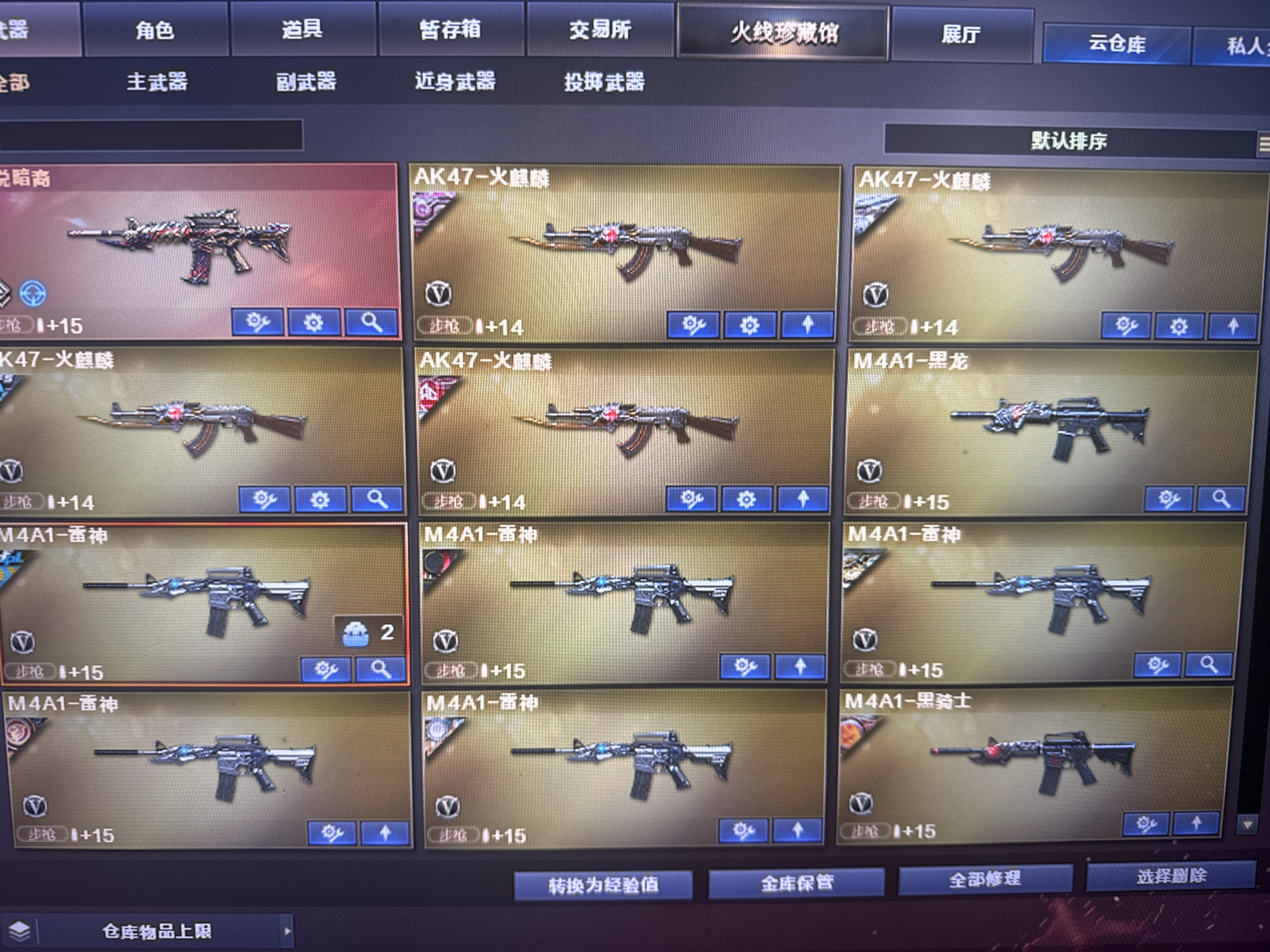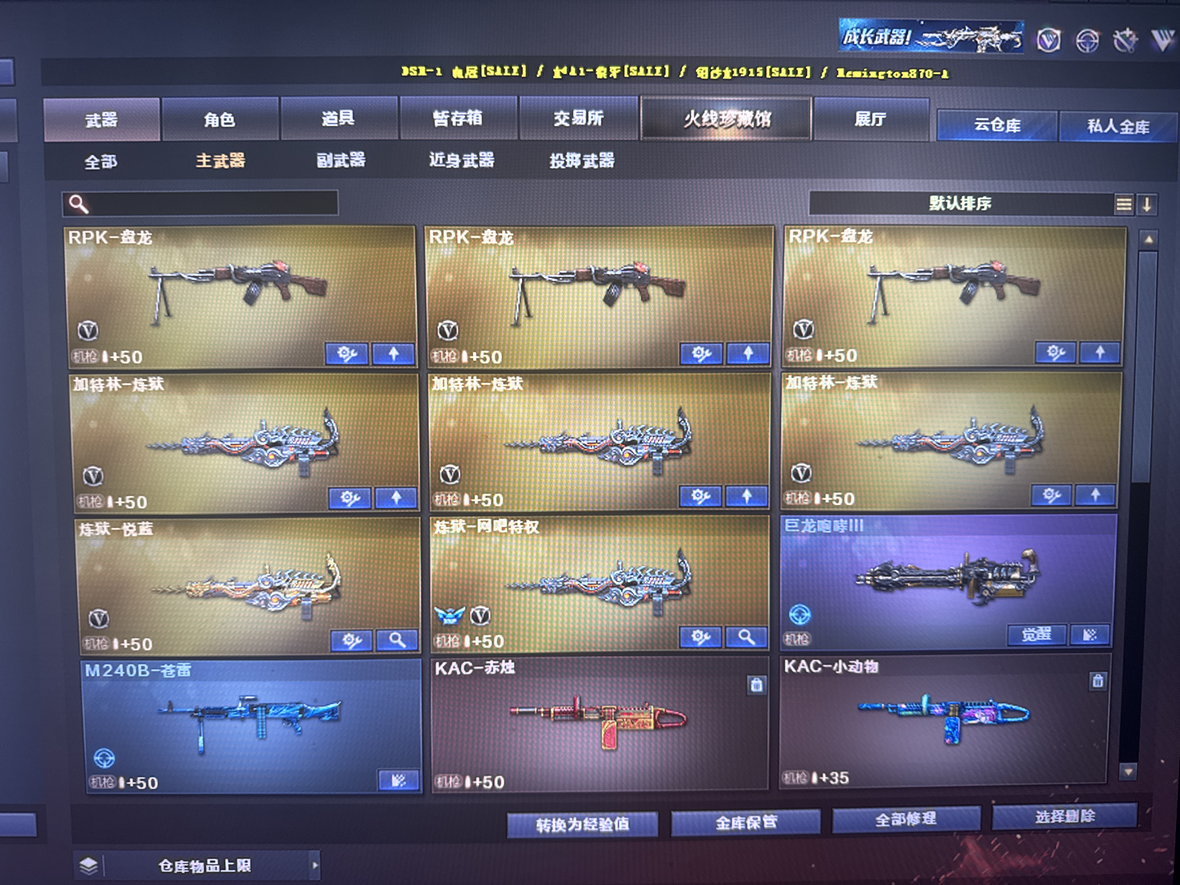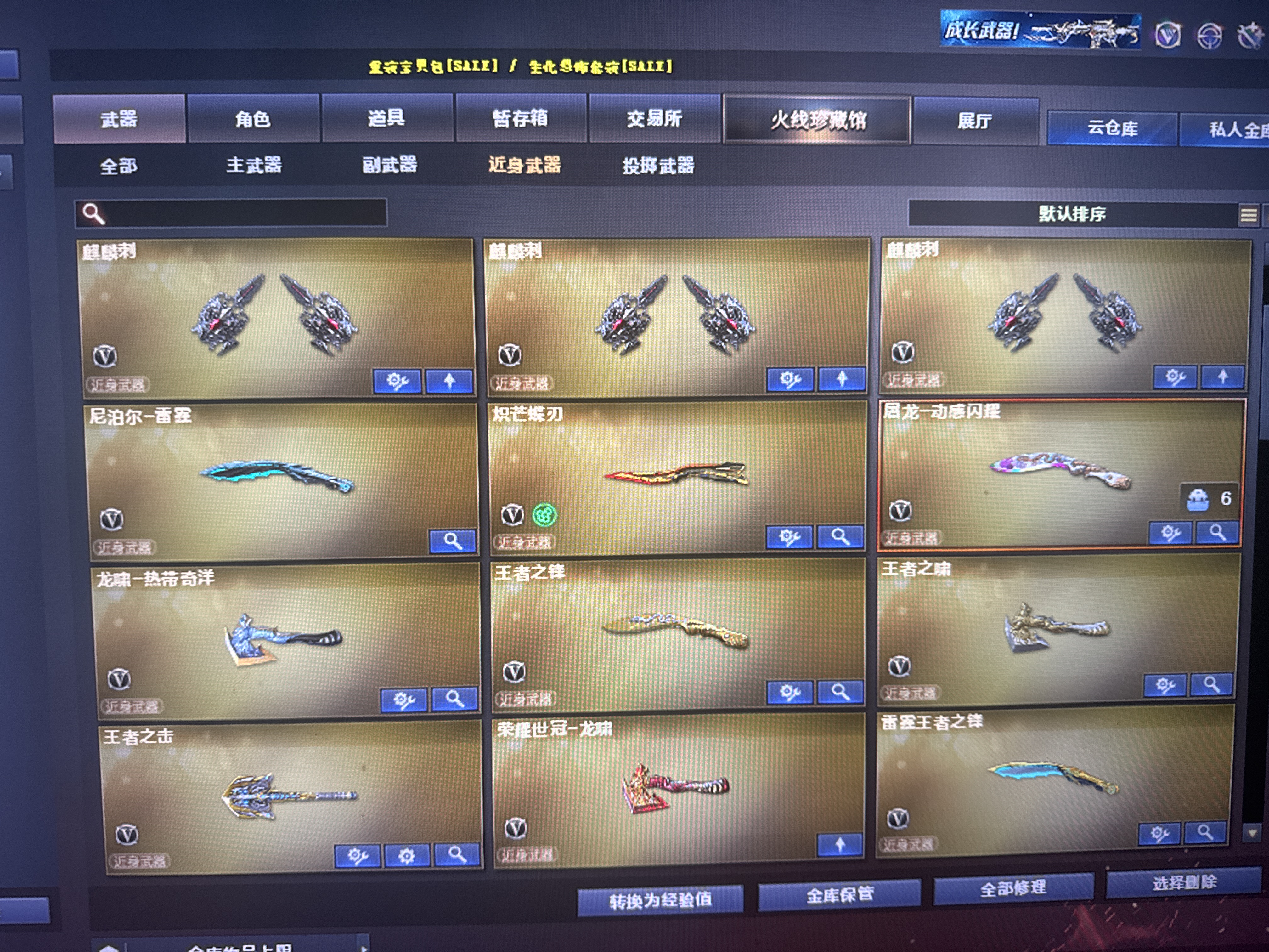 可爆破可生化,详细看截图;USP-雷暴,荣耀世冠-柯尔特,炽芒蝶刃,传说影煞,电竞教官-云悠悠,RPK-盘龙,QBZ03-金色蔷薇,