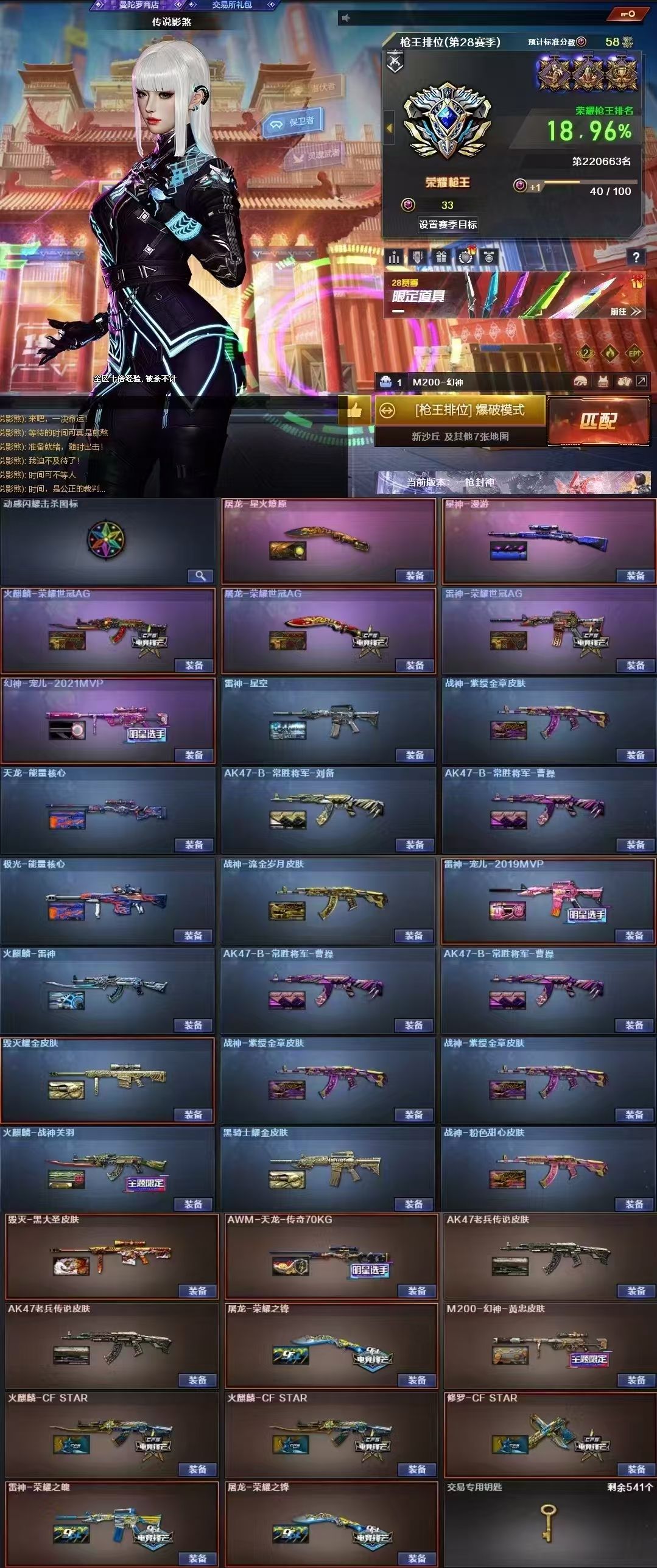 【北部】传说影煞❤幻神宠儿+音❤星神套❤6烈斯太尔❤2蝴蝶刀❤4cop*3柯尔特满手