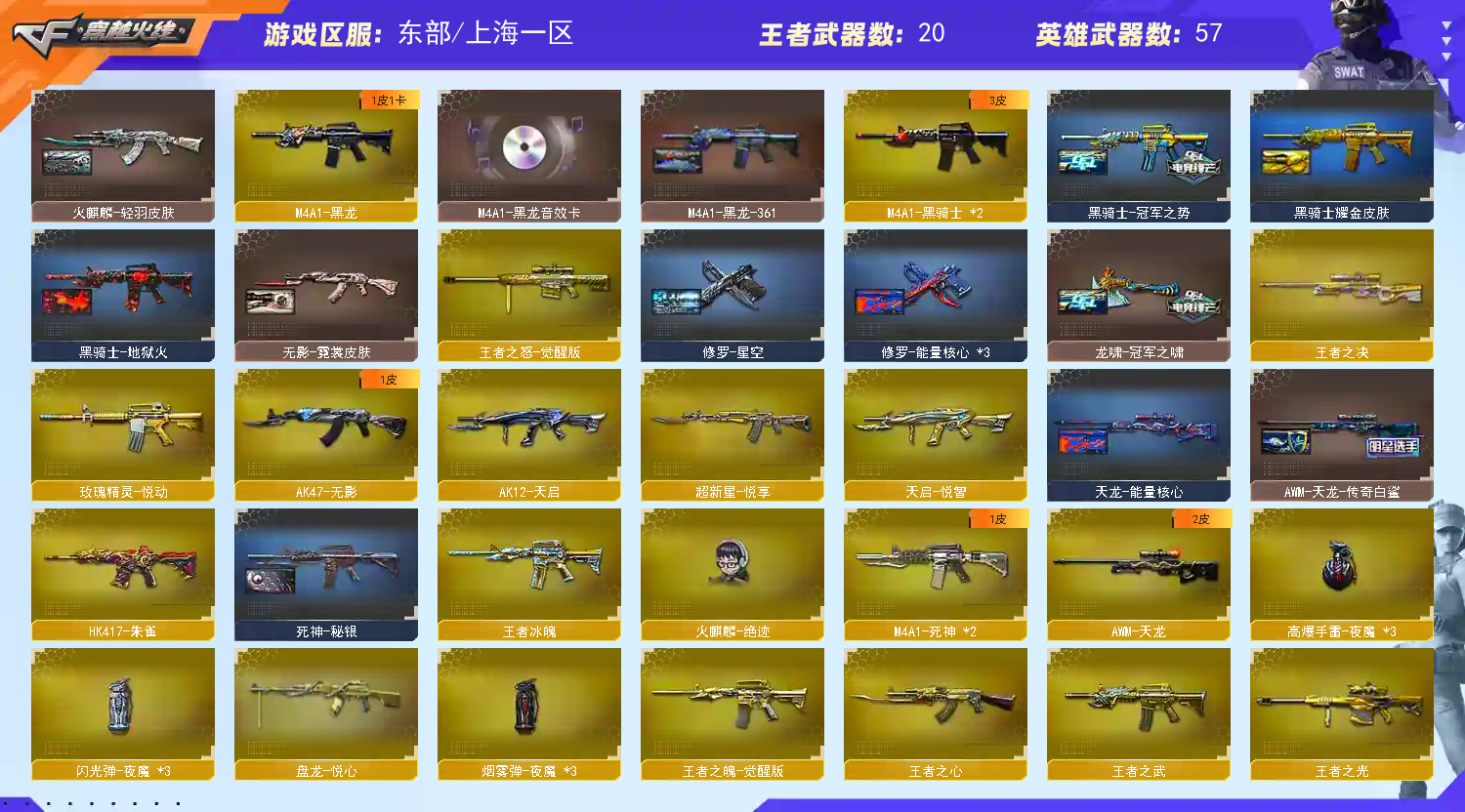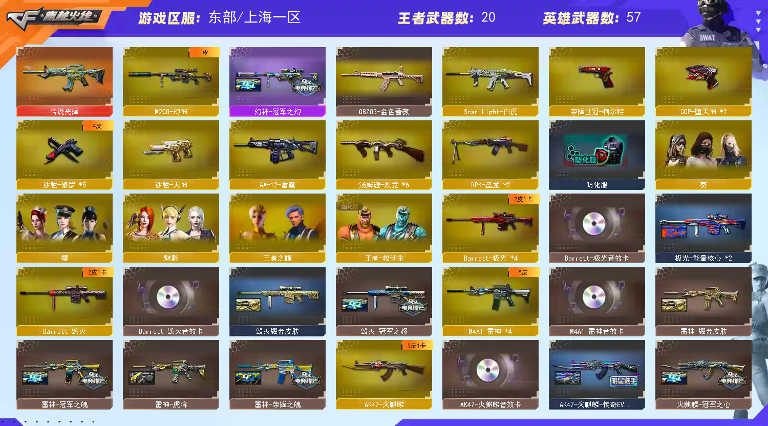 【幻神+幻神冠军之幻】世冠柯尔特【传说光耀】【白虎 417朱雀】【火麒麟even 毁灭ag冠军 毁灭2018 黑骑士地狱火 火麒麟2018 雷神荣耀之魄 雷神冠军之魄 毁灭冠军之怒 火麒麟轻羽 火麒麟冠军之心 雷神白鲨】【火麒麟 雷神 毁灭 极光 黑龙音效卡】【王者炎心 王者之鲨 王者冰魄 王者之魄 王者之怒】【qbz金色蔷薇 火麒麟 雷神 毁灭】2盘6烈 2cop【火麒麟绝迹 芭蕾特零水下丽影】【兰海滩派对】ac+工具包+手雷包永久有效;荣耀世冠-柯尔特,RPK-盘龙,QBZ03-金色蔷薇,M200-幻神,Scar Light-白虎,