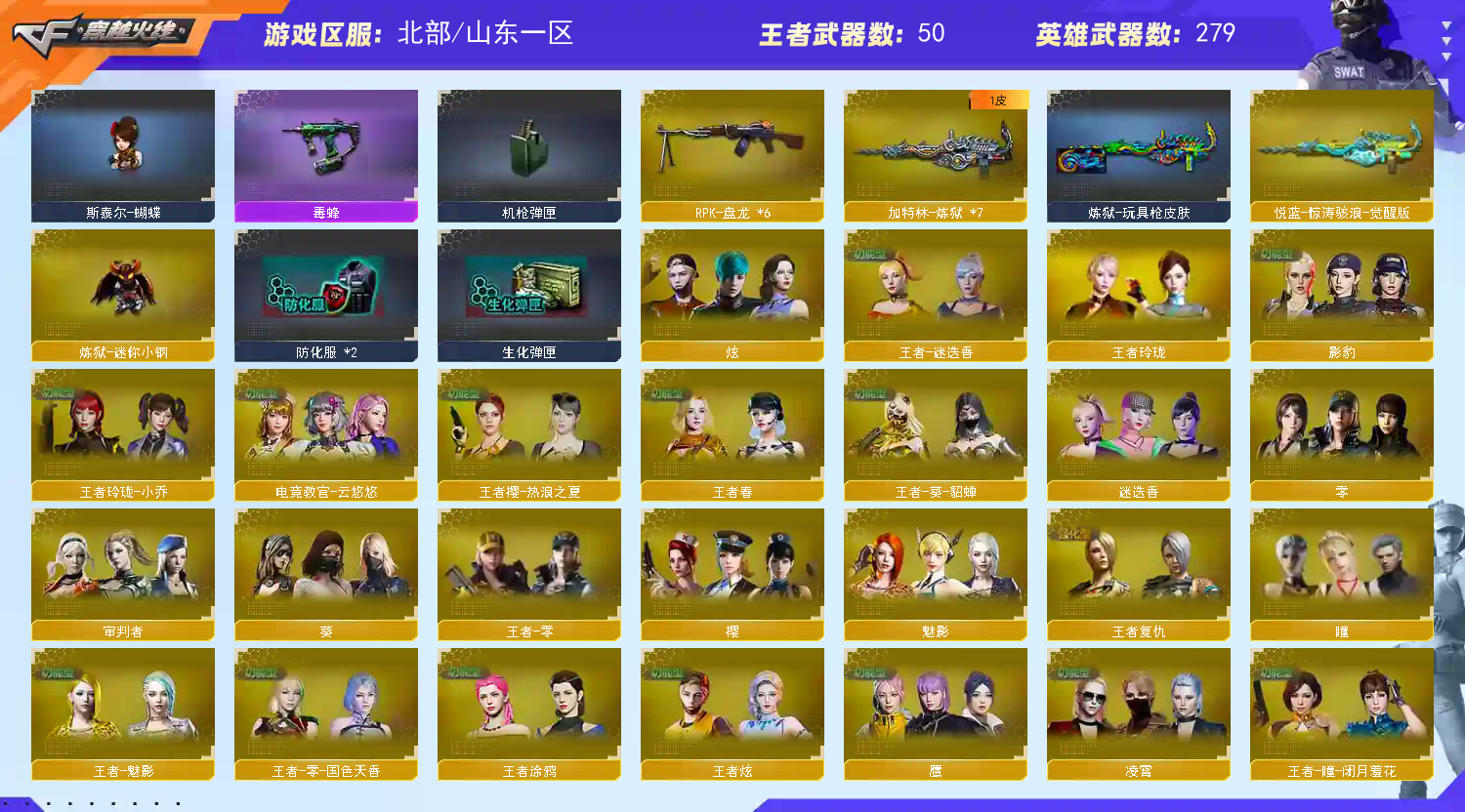 >>>>>>毁号,涉及毁坏虚拟财产罪及计算机安全罪,请文明游戏素质游戏,让我们共建美好租号平台>>>>>> 本游戏账号:英雄武器293个; 王者武器29个。 装备不多,但是主武器、副武器、近身武器够用 拥有完美游戏体验。特殊装备有:M200-幻神、USP-雷暴、传说光耀、HK417-朱雀、龙啸-堕天神、柯尔特-竞技荣光、M200-竞技荣光、擎天-竞技荣光、闪光弹-竞技荣光、烟雾弹-竞技荣光、传说梦魇、传说圣灵、荣耀世冠-龙啸、荣耀世冠-柯尔特、荣耀世冠-雷神、荣耀世冠-火麒麟、加特林-炼狱、M4A1-玫瑰精灵、麒麟刺、AK47-火麒麟、王者之魄烟雾弹、闪光弹-雷霆王者、高爆手雷-雷霆王者、王者之魄高爆手雷、王者之锋、王者炎心、王者之魄闪光弹、烟雾弹-雷霆王者、王者白虎-觉醒版、王者幻神-觉醒版、王者幻神、王者之城、火麒麟-绝迹、迷迭香、沙漠玫瑰、魅影、王者玲珑-小乔、王者-迷迭香、灵狐者-职业经理、职业选手、王者涂鸦、王者玲珑、王者-零、堕天使、雪莉杨、王者-魅影、王者-瞳-闭月羞花、王者-葵-貂蝉、炽天使、M4A1-黑骑士音效卡、M200-幻神音效卡、生化弹匣、王者之心金色;USP-雷暴,荣耀世冠-柯尔特,沙漠玫瑰,电竞教官-云悠悠,RPK-盘龙,QBZ03-金色蔷薇,M200-幻神,