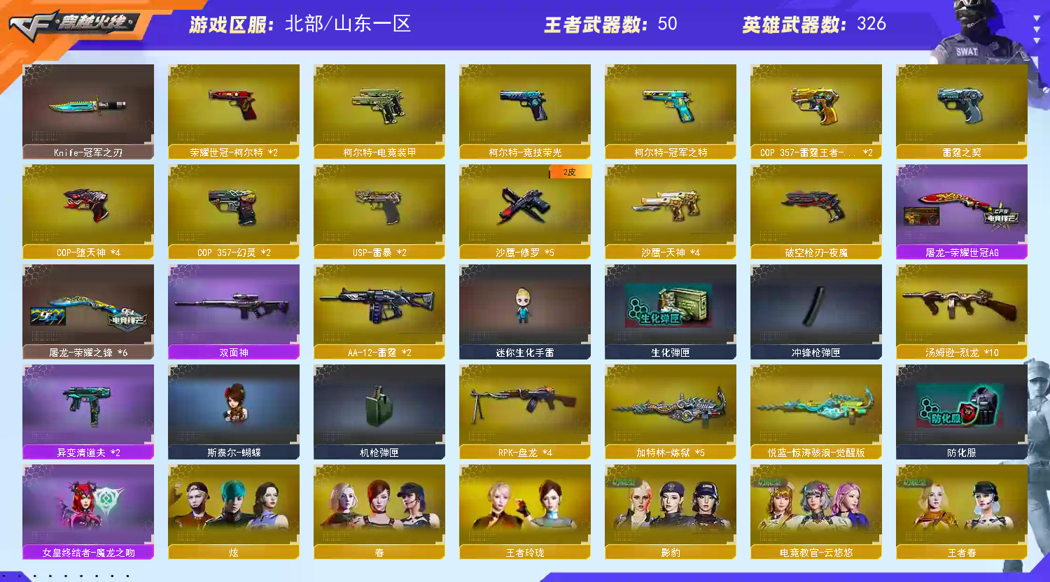 ★收藏好评! 由于异地登录保护机制,部分客户在使用客户端自动上号时会出现密码错误,注意本号密码不会错误,请多尝试5-6次!本账号已经过虚拟财产认定,请各位科技大神高抬贵手。请素质租号,文明游戏,谢谢大家配合!!;USP-雷暴,荣耀世冠-柯尔特,柯尔特-冠军之特,Knife-冠军之刃,传说女帝,电竞教官-云悠悠,传说艾莉莎,