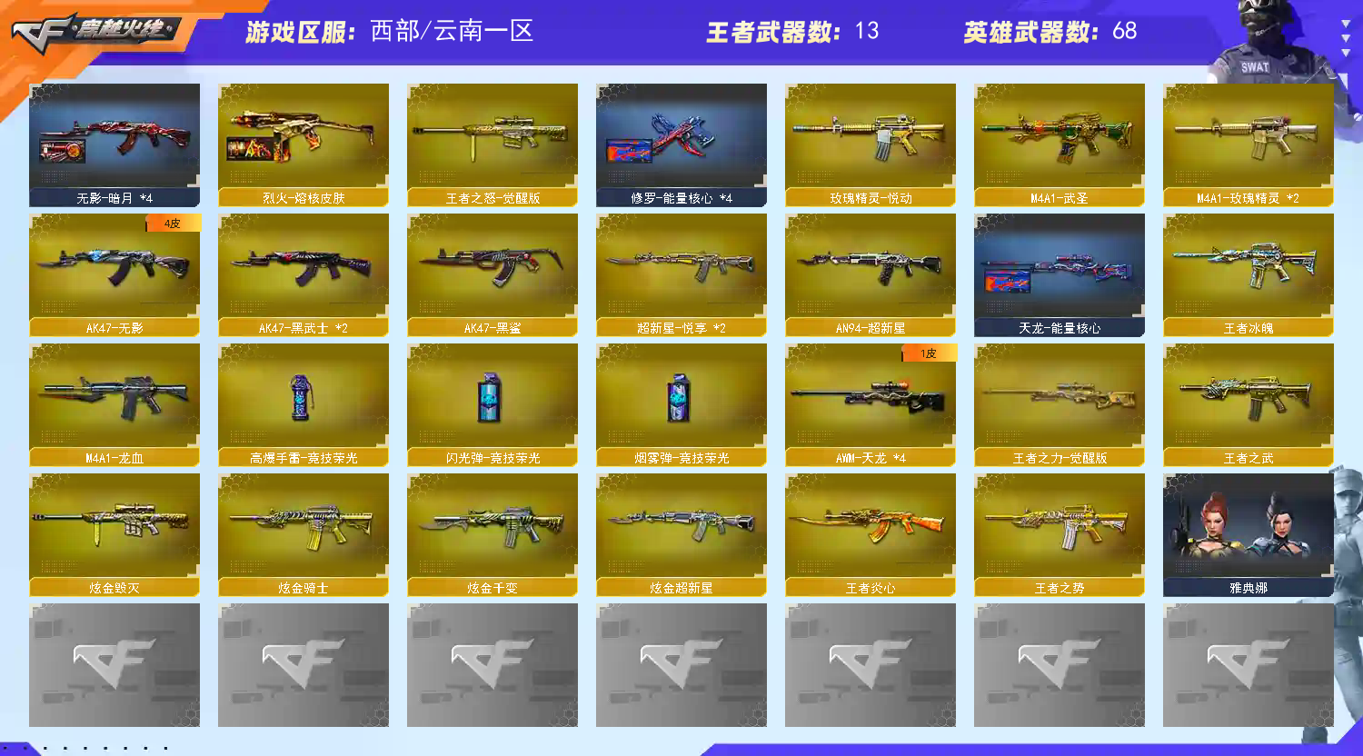 云南一区71v8王者6炫金可排位【/黑骑士音效卡/极光音效卡/】【烈火-熔核皮肤/黑骑士-摸金校尉/雷神-机甲刑天皮肤/火麒麟-冠军之心/毁灭-神秘黑洞皮肤/火麒麟-雷神/火麒麟-CFSTAR/黑骑士-伏羲/毁灭耀金皮肤/】【狐影/空/灵狐者七夕宝贝/龙儿小淘气/夜玫瑰x/GEM邓紫棋/雅典娜/】【QBZ03-金色蔷薇/3火麒麟/黑龙/3雷神/黑骑士/无影/黑武士/超新星/武圣/黑鲨/龙血/M4玫瑰精灵/3烈火/4天龙/3毁灭/3极光/2裁决/王者之怒觉醒/王者之力觉醒/炼狱/4烈龙/3修罗/3天神/8屠龙/龙啸/2擎天/4麒麟刺/王者冰魄/王者炎心/王者之势/王者之武/炫金千变/炫金骑士/炫金毁灭/王者之锋/王者之啸/1套荣光雷;QBZ03-金色蔷薇,