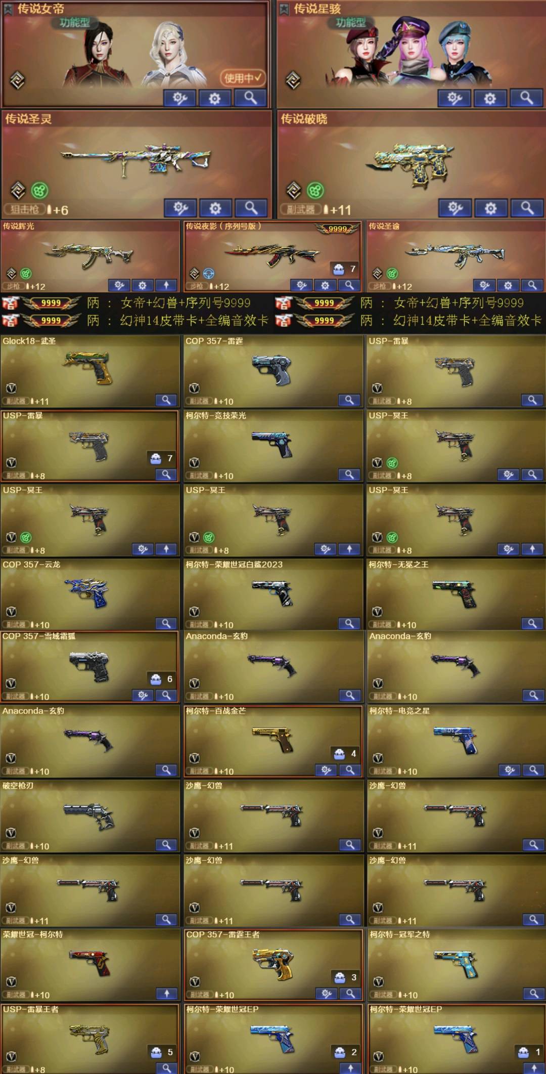首页 > 租号大厅 > 穿越火线 > 网通区/辽宁一区 > 单字金名:陃.序列号9999+幻兽5套.最新kz皮电竞之星+EP全套.传说女帝+星骇.23副手全音效