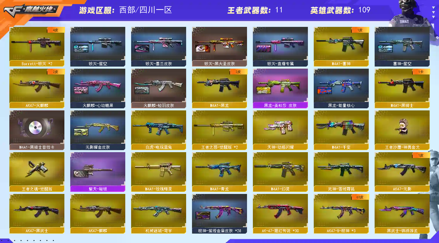 • 游戏区服:穿越火线 / 电信区 / 四川一区