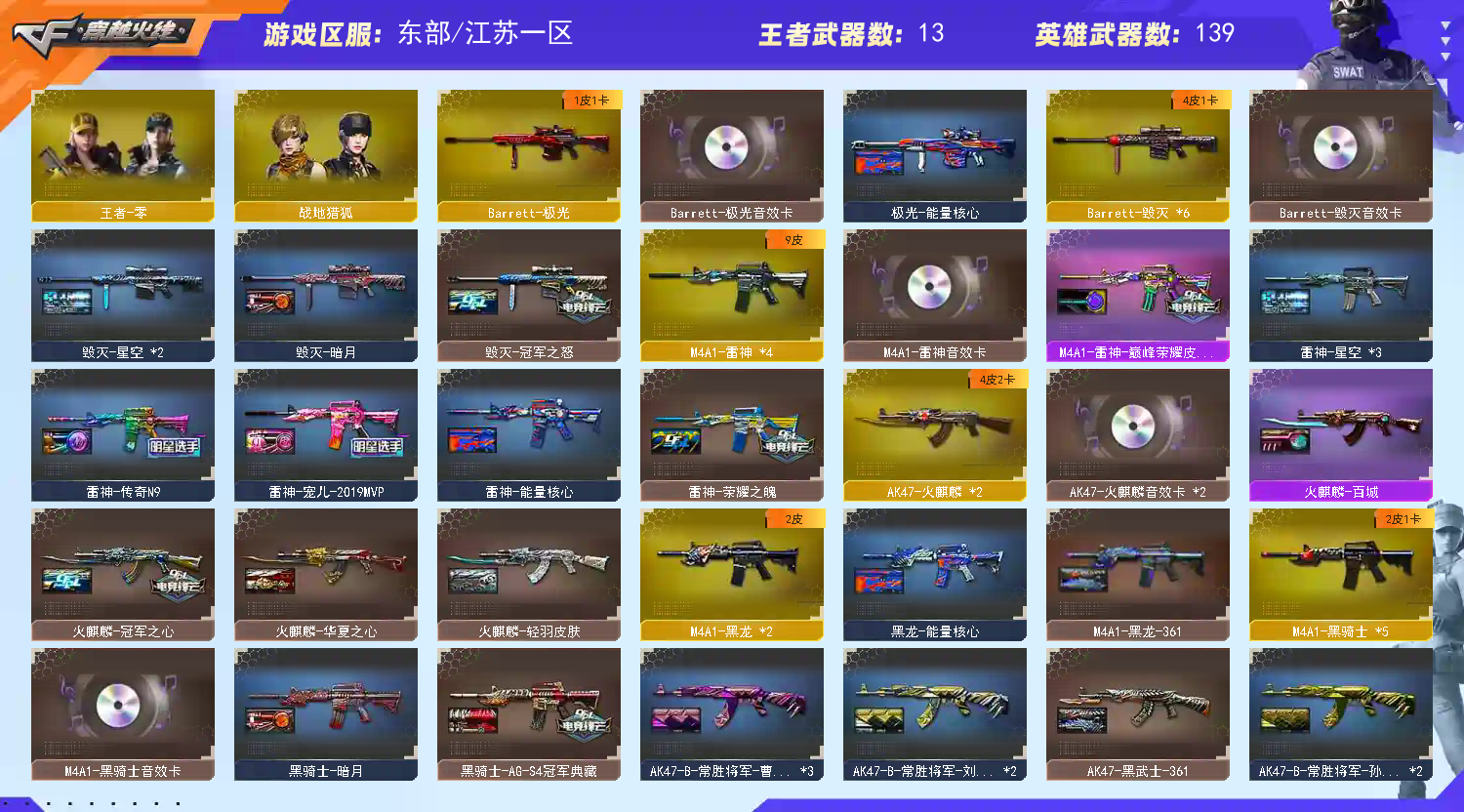 ★收藏好评! 由于异地登录保护机制,部分客户在使用客户端自动上号时会出现密码错误,注意本号密码不会错误,请多尝试5-6次!本账号已经过虚拟财产认定,请各位科技大神高抬贵手。请素质租号,文明游戏,谢谢大家配合!!;USP-雷暴,荣耀世冠-柯尔特,柯尔特-冠军之特,Knife-冠军之刃,RPK-盘龙,QBZ03-金色蔷薇,M200-幻神,