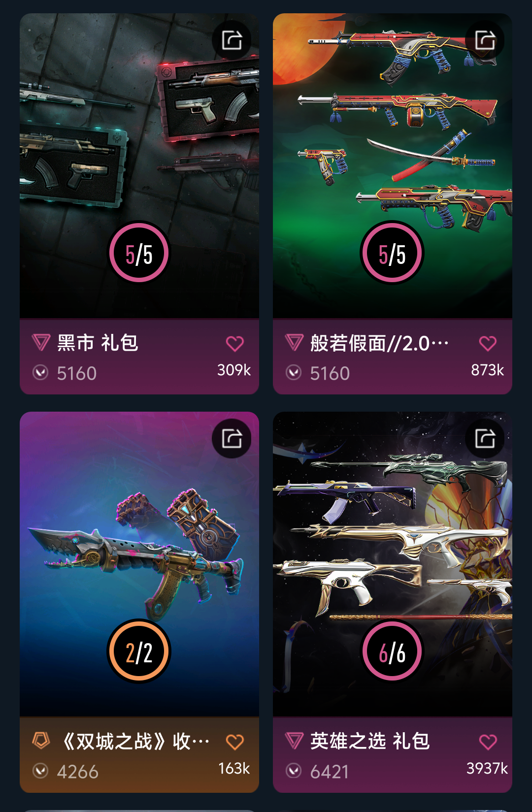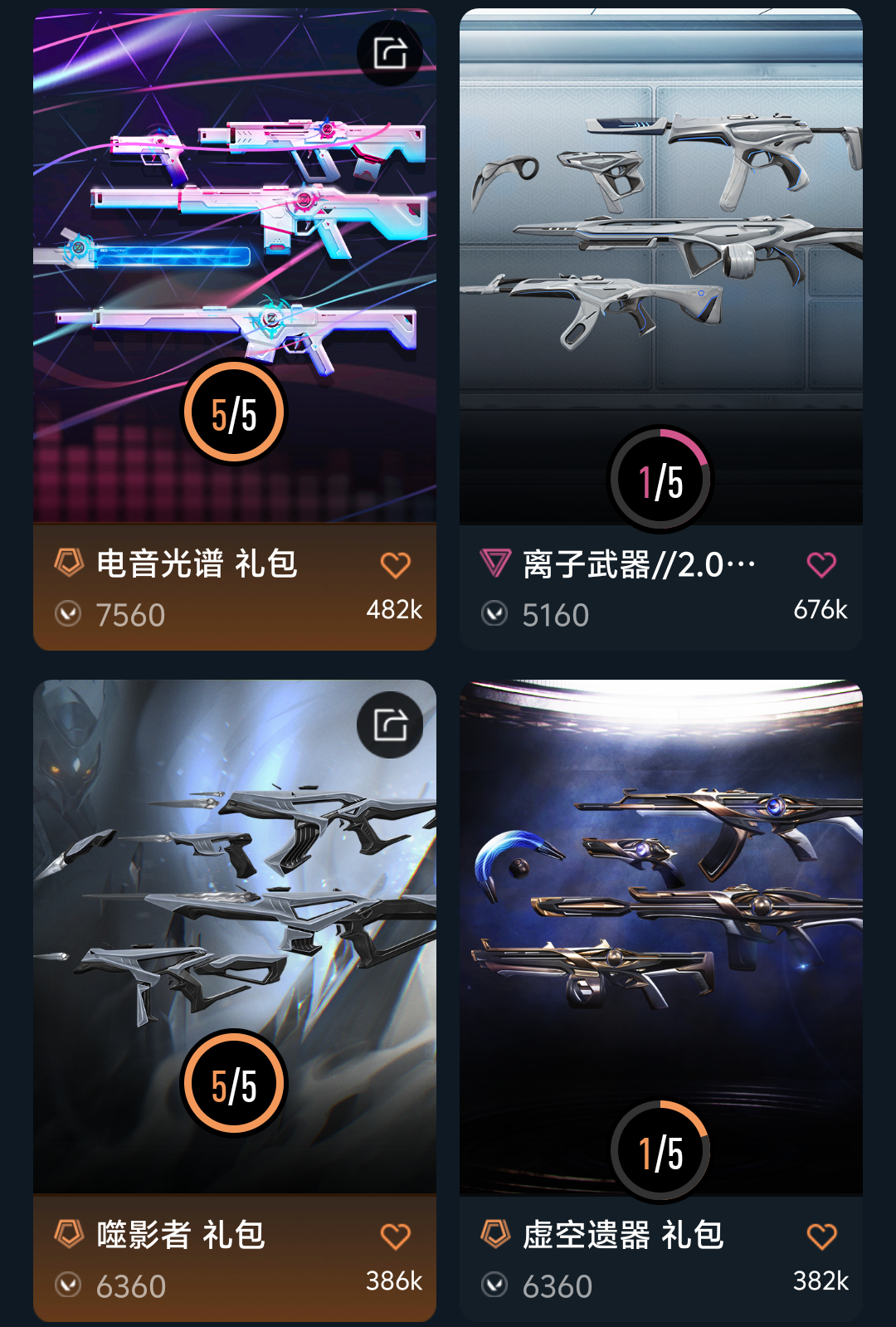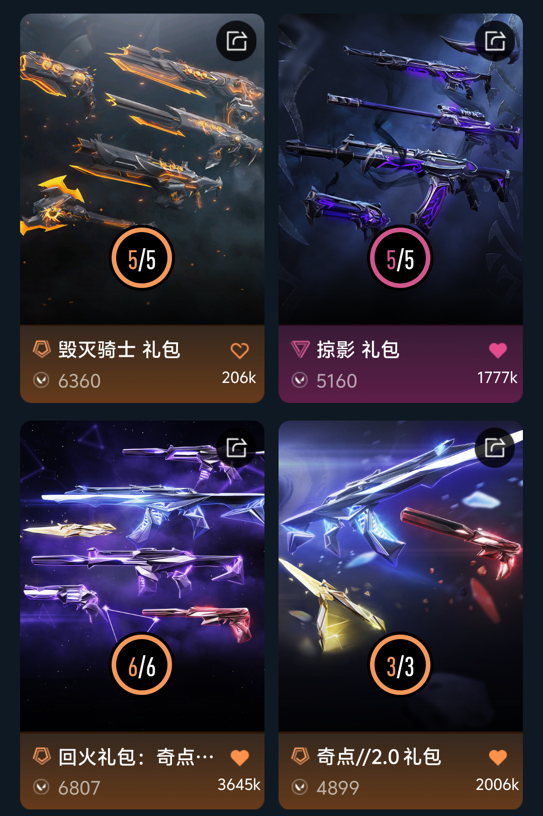 怜悯,vct爪刀,22冠军套,24冠军。皮肤多到不敢想象,主流皮肤全都有,自己看不多说。