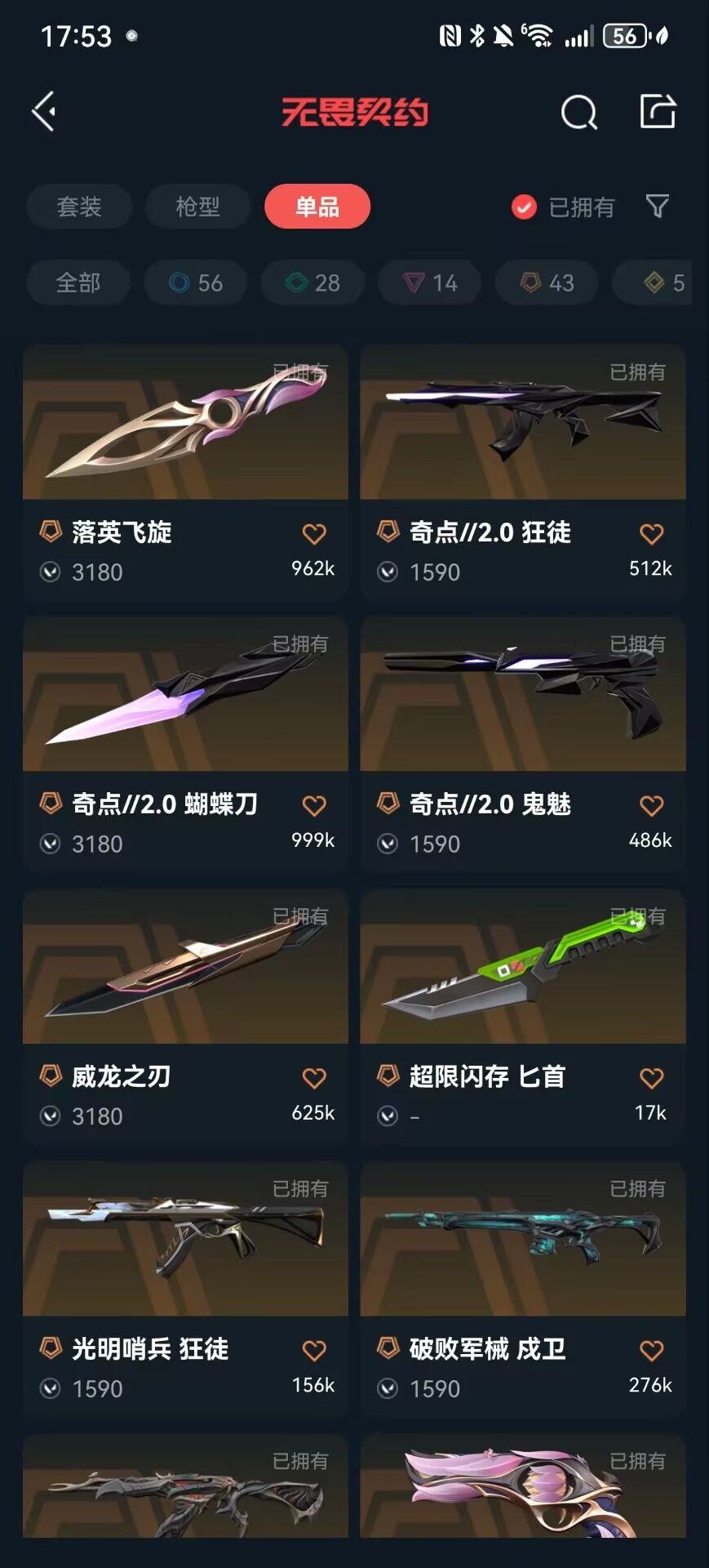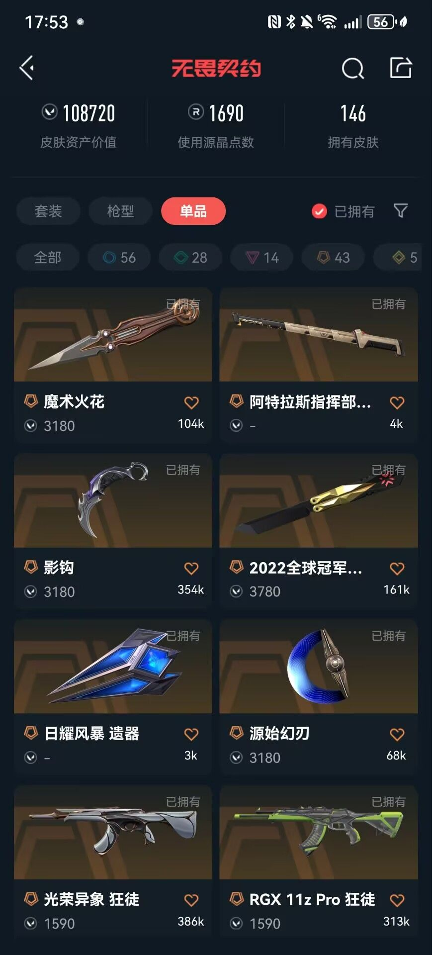 首页 > 租号大厅 > 无畏契约-wegame > wegame/wegame > 冻结秒解✨10W库存✨般若2.0套✨ROG3.0✨魔术火花✨22冠军蝴蝶✨影钩✨光荣异象狂徒✨电玩幻