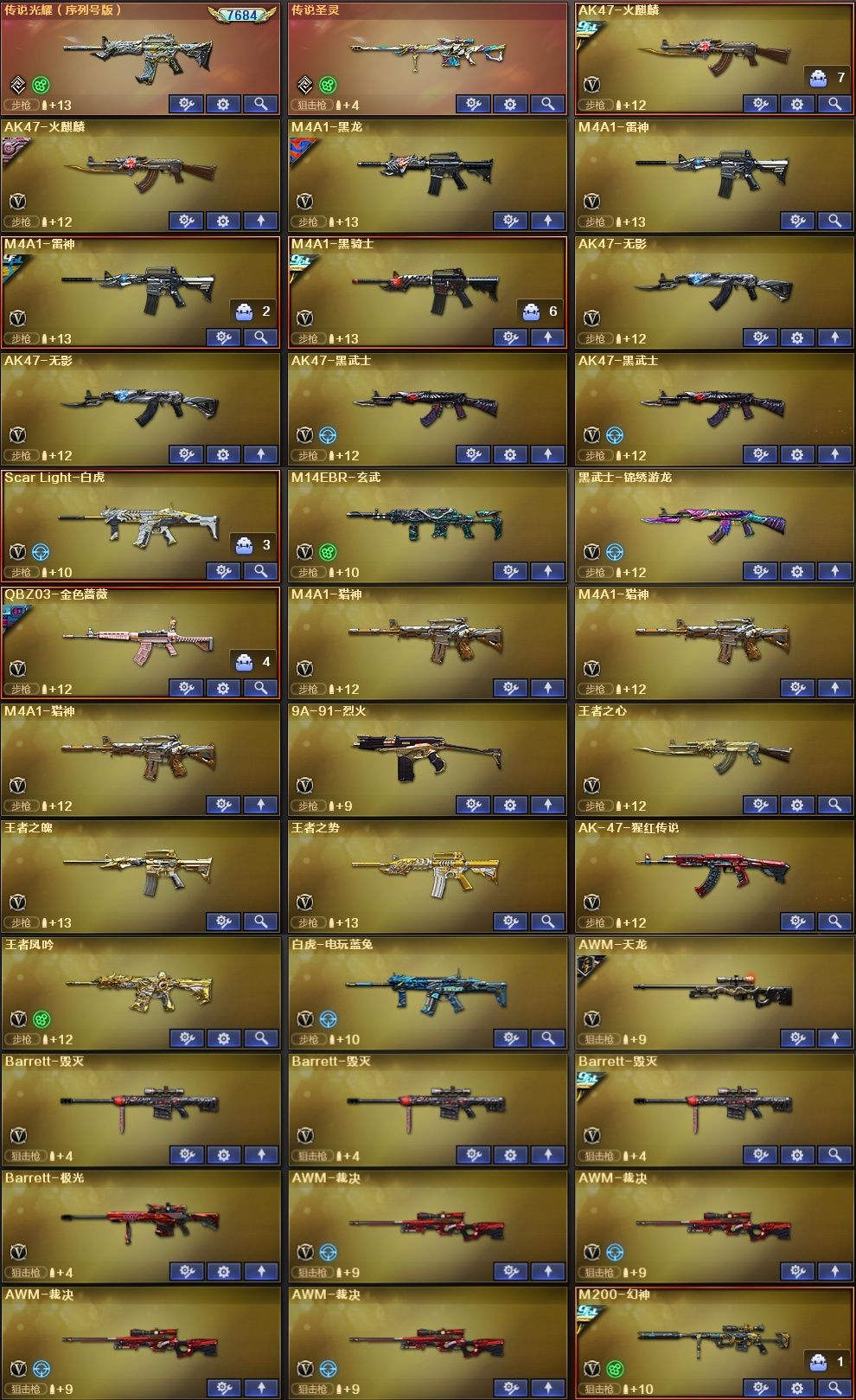 ★收藏好评! 由于异地登录保护机制,部分客户在使用客户端自动上号时会出现密码错误,注意本号密码不会错误,请多尝试5-6次!本账号已经过虚拟财产认定,请各位科技大神高抬贵手。请素质租号,文明游戏,谢谢大家配合!!;荣耀世冠-柯尔特,传说女帝,QBZ03-金色蔷薇,M200-幻神,Scar Light-白虎,
