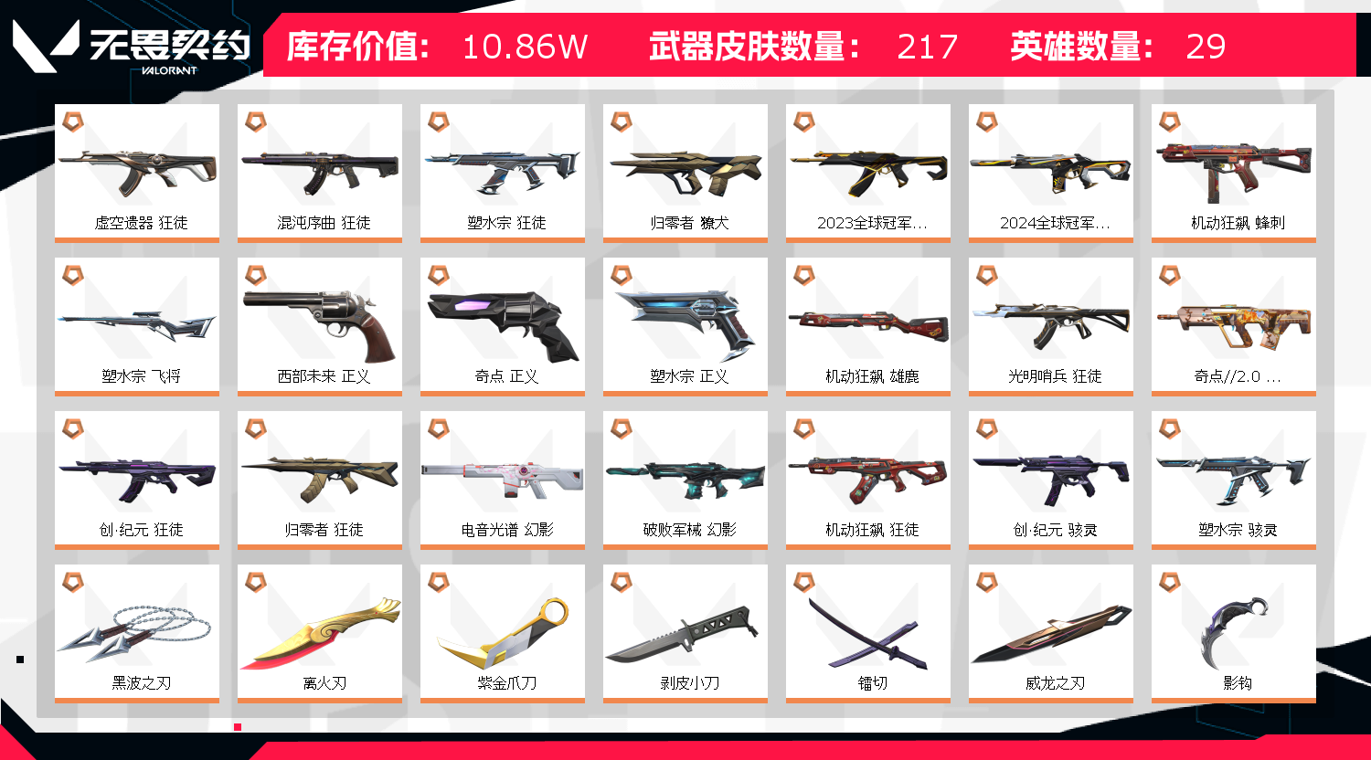 • 皮肤资产价值: 108555