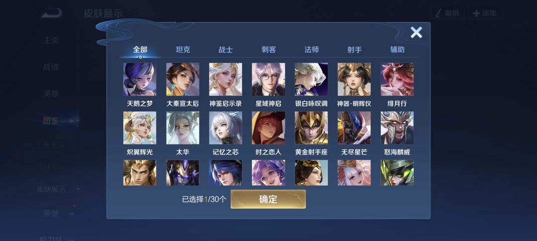 V10、543皮14水、吕布典藏-千魇归渊、愿照·九州拓、愿照·众生和、怪盗基德、伽罗星传说红枫、瑶典藏拾光映像、冥王哈迪斯、、龙年限定、齐天大圣