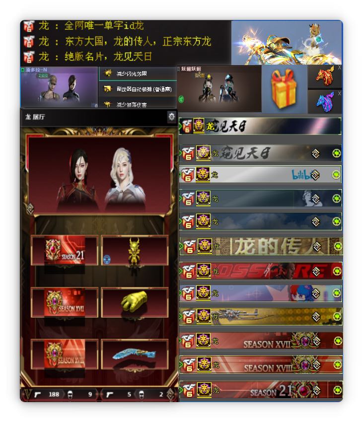 首页 > 租号大厅 > 穿越火线 > 电信区/上海一区 > 天花板单字id龙✨女帝ep幻神qbz星火冠军之星拼搏百战金芒灵眸幻神10皮满副武器满音效卡✨禁队伤