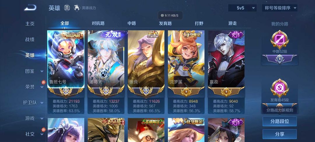 巅峰开⭐历史2.1w战力国服鲁班七号⭐历史国服诸葛亮张良⭐52段中路⭐带妹必备