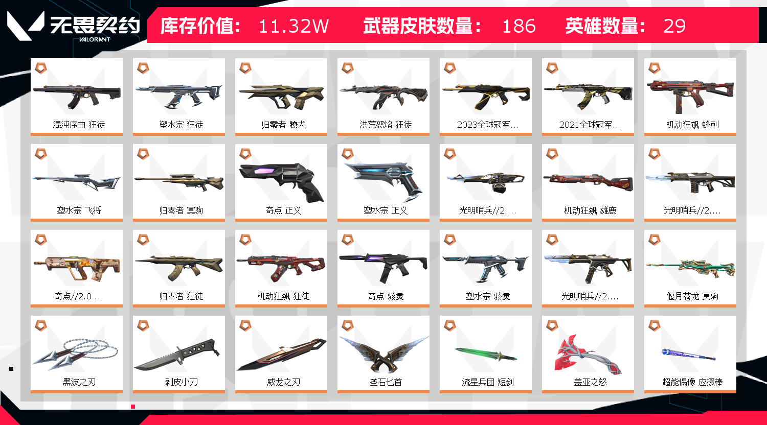• 皮肤资产价值: 113250