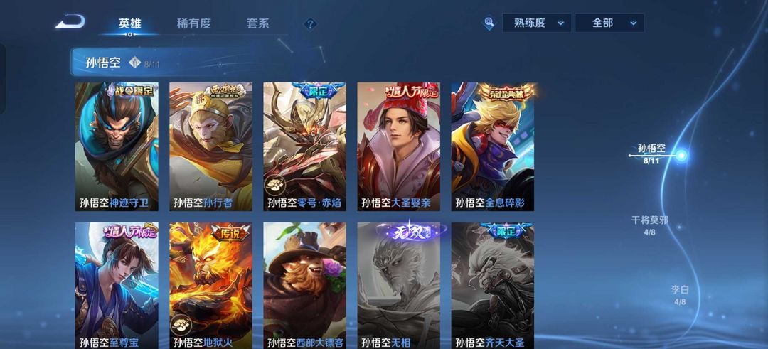 女生号 贵10 多皮肤多传说 别拿那些空号v10来比 要看性价比 貂蝉武则天夏侯惇孙悟空李白鲁班小乔荣耀水晶 妲己九尾无双皮肤 80个传说 473皮肤