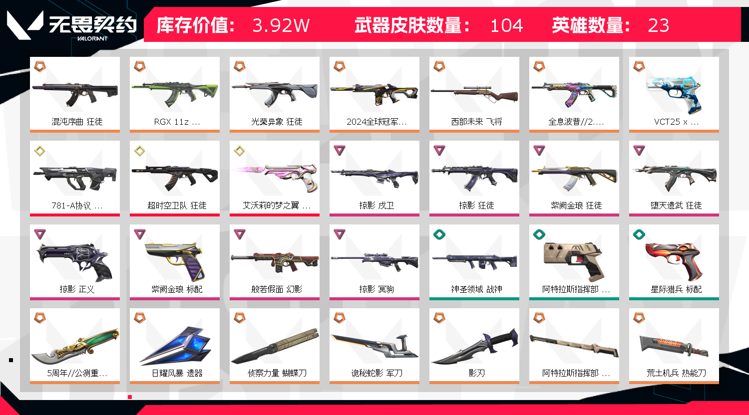 • 皮肤资产价值: 39240