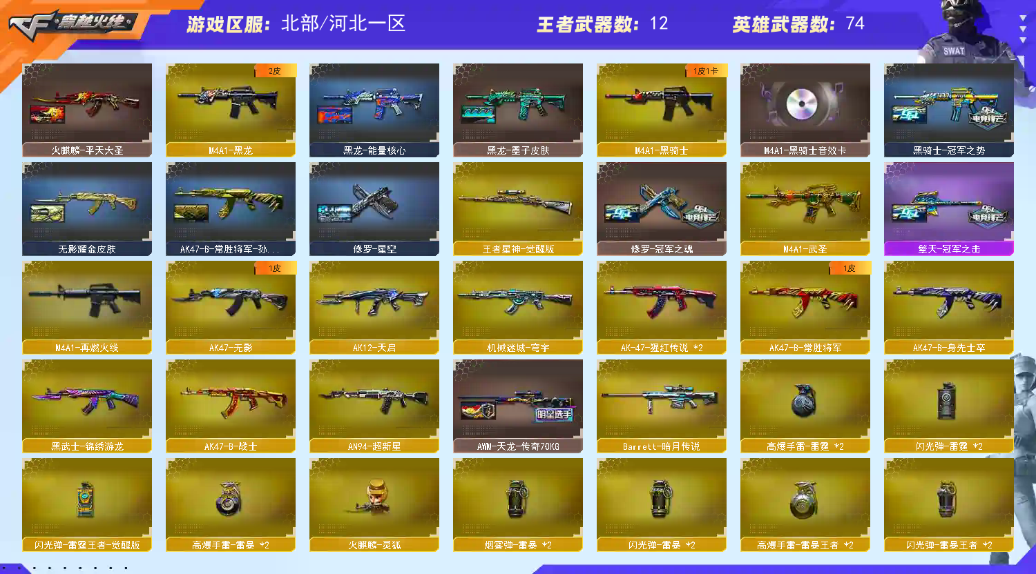 88v G36C-幻影✨幻神-新AG.女团.宠儿.丹凤.电流骇客.2022+音效✨星神-冠军.璀璨.枪娘默+音效✨裁决-巅峰荣耀.夜芒苍灵.流光秘银.凤灵.运输船+音效✨金色蔷薇-拼搏.冠军之薇+音效❤白虎-白鲨冠军.暗星✨冠军之特.刃*2+USP-雷暴.冥王*3+柯尔特-荣耀白鲨2023✨炽火炎龙/王者星神.力.影.冰峰/毁灭-SV冠军.虹光风暴.耀金.风暴+音效/雷神-荣耀.拼搏.耀金.再燃火线+音效/火麒麟-心动糖果.STAR+音效/黑骑士-冠军.白马银枪+音效/黑龙-墨子/无影-耀金/天龙-STAR.传奇/修罗-冠军.STAR.星空/屠龙-破浪逐光.星耀.彼岸花/擎天-冠军/荆棘/枪娘樱(阿敏)/星际战将/隼/职业选手/魅影/狐影/王者-零.凌霄/修道士/零-水下丽影/葵/11音效/Vip6;USP-雷暴,柯尔特-荣耀世冠白鲨2023,柯尔特-冠军之特,Knife-冠军之刃,隼,QBZ03-金色蔷薇,G36C-幻影,