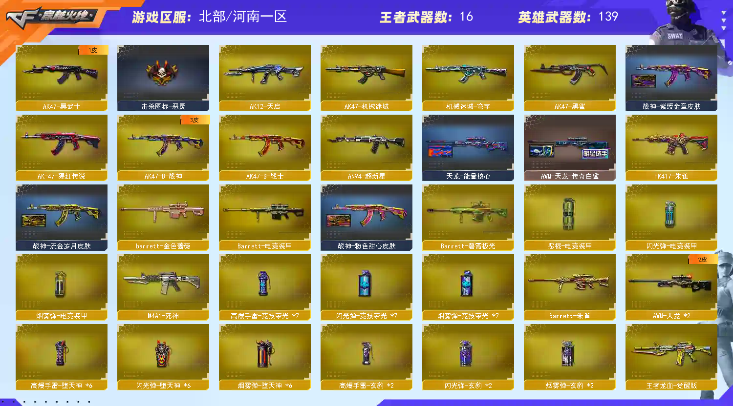 此账号和平台属于合作关系,已经备案。如果账号封号或者什么的,商户将会协助平台然后报警。 收藏好评!由于异地登录保护机制,部分客户在使用客户端自动上号时会出现密码错误,注意本号密码不会错误,请多尝试5-6次!本账号已经过虚拟财产-认1证。请素质租号,文明游戏,谢谢大家配合!!!;USP-雷暴,隼,电竞教官-云悠悠,RPK-盘龙,QBZ03-金色蔷薇,G36C-幻影,M200-幻神,