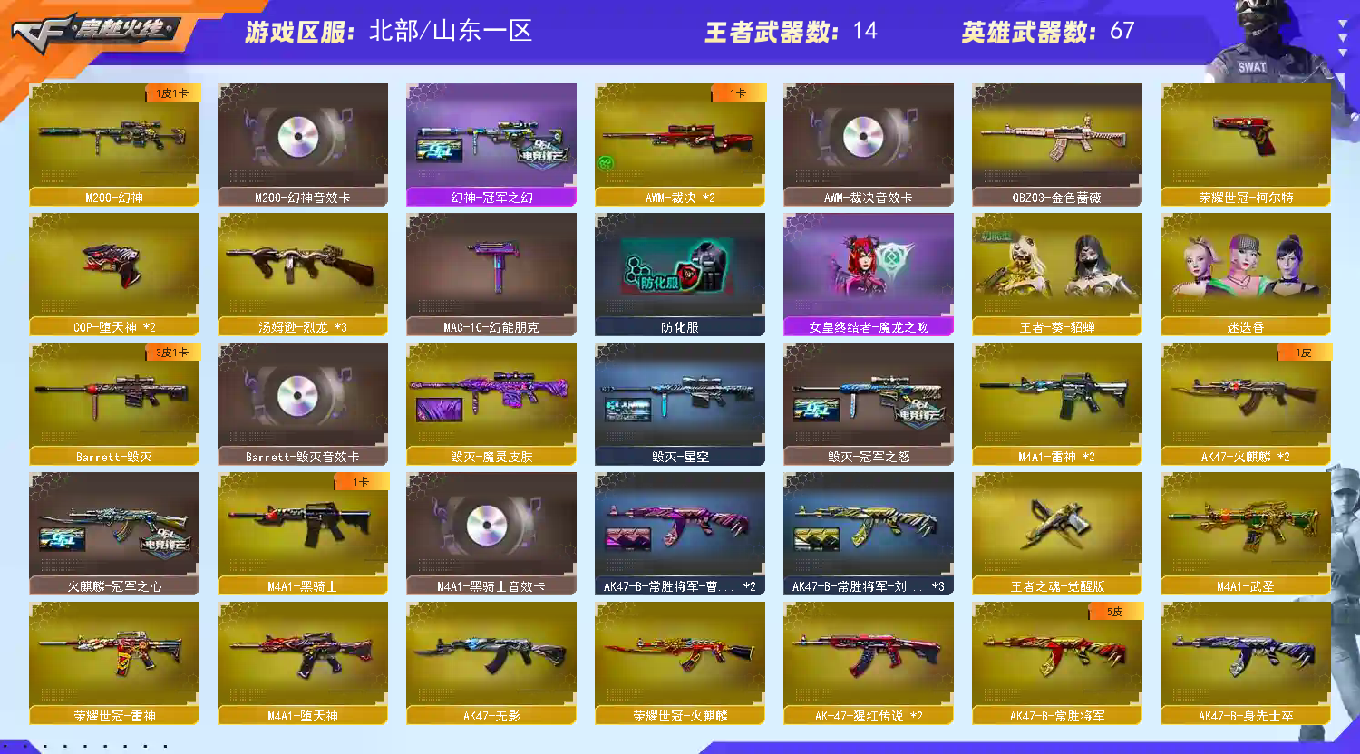 可排/冠军幻神音效卡/荣耀世冠套/毁灭冠军星空/堕天神套;荣耀世冠-柯尔特,QBZ03-金色蔷薇,M200-幻神,