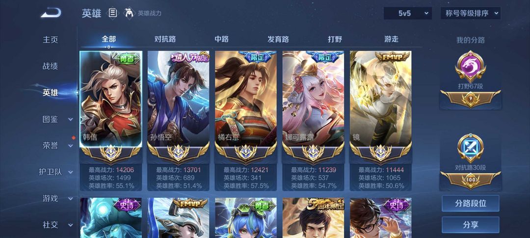 首页 > 租号大厅 > 王者荣耀 > 标题写明区服/QQ > 本周在榜全国曹操⭐巅峰对抗路✨67段打野⭐历史国服镜韩信娜可露露橘右京