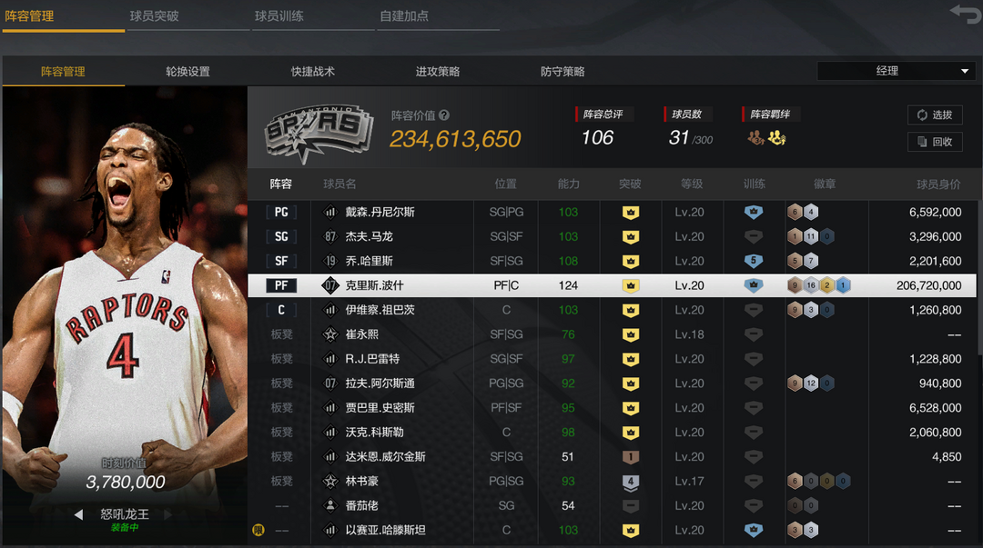 1.【满突07克里斯波什】07波什带时刻怒吼龙王,博士,全能内线带王朝阵容; 2.可以打排位赛,街头段位:全明星,王朝段位:发展联盟; 3.信誉分:100,更新时间:12.24; 4.请勿消极游戏、强退游戏等减罚信誉分行为,最后几分钟请勿再开始排位或者匹配,希望您开一把自定义,感谢您的配合与理解。