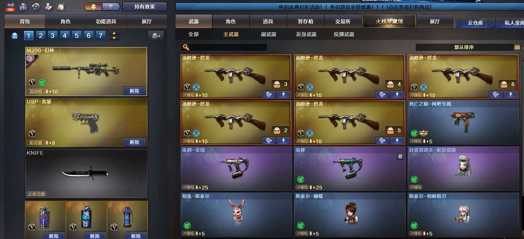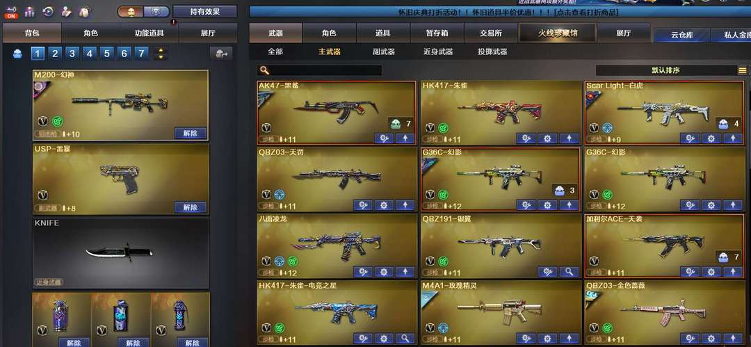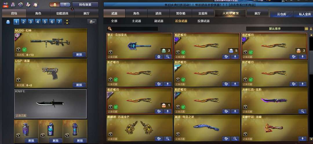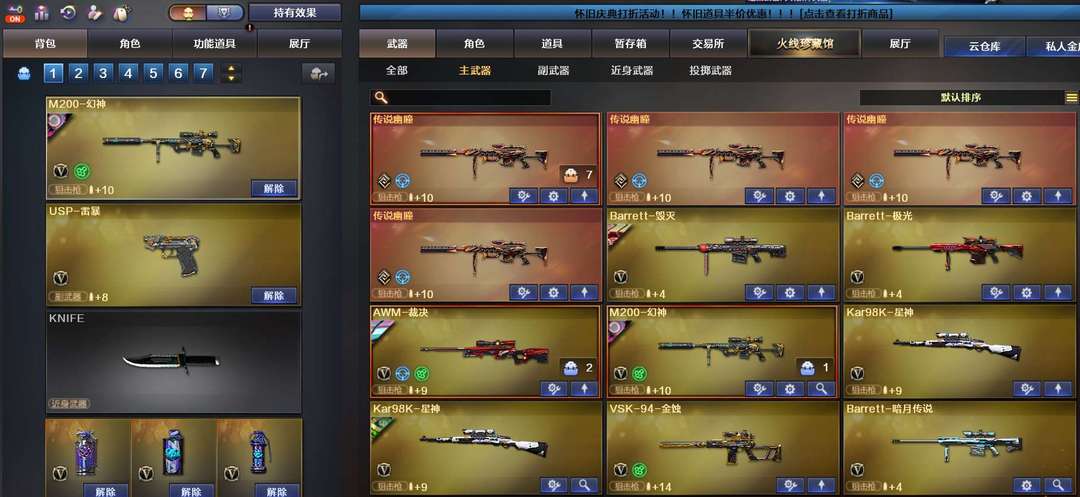 首发加利尔天袭,幻神11皮,首发ep,电竞之星,传说影煞7蝴蝶刀,7把蝴蝶刀五皮肤。双玄武奇幻泡泡象金狮子,M200喜狮迎春,全音效卡,满配副武器超多小人枪,新到冥王usp,王者雷暴usp,玄豹副武器,喜欢收藏