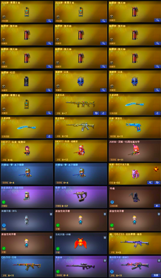 传说影煞传说圣谕双奇幻炼狱泡泡象幻神三件套白虎三件套裁决三件套天戎5盘龙3炼狱6烈龙蝴蝶斯泰尔异变清道夫蝴蝶刀双全装;炽芒蝶刃,传说影煞,RPK-盘龙,QBZ03-金色蔷薇,M200-幻神,Scar Light-白虎,传说圣谕,