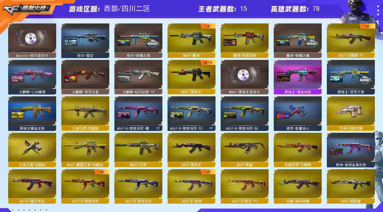 • 游戏区服:穿越火线 / 电信区 / 四川二区