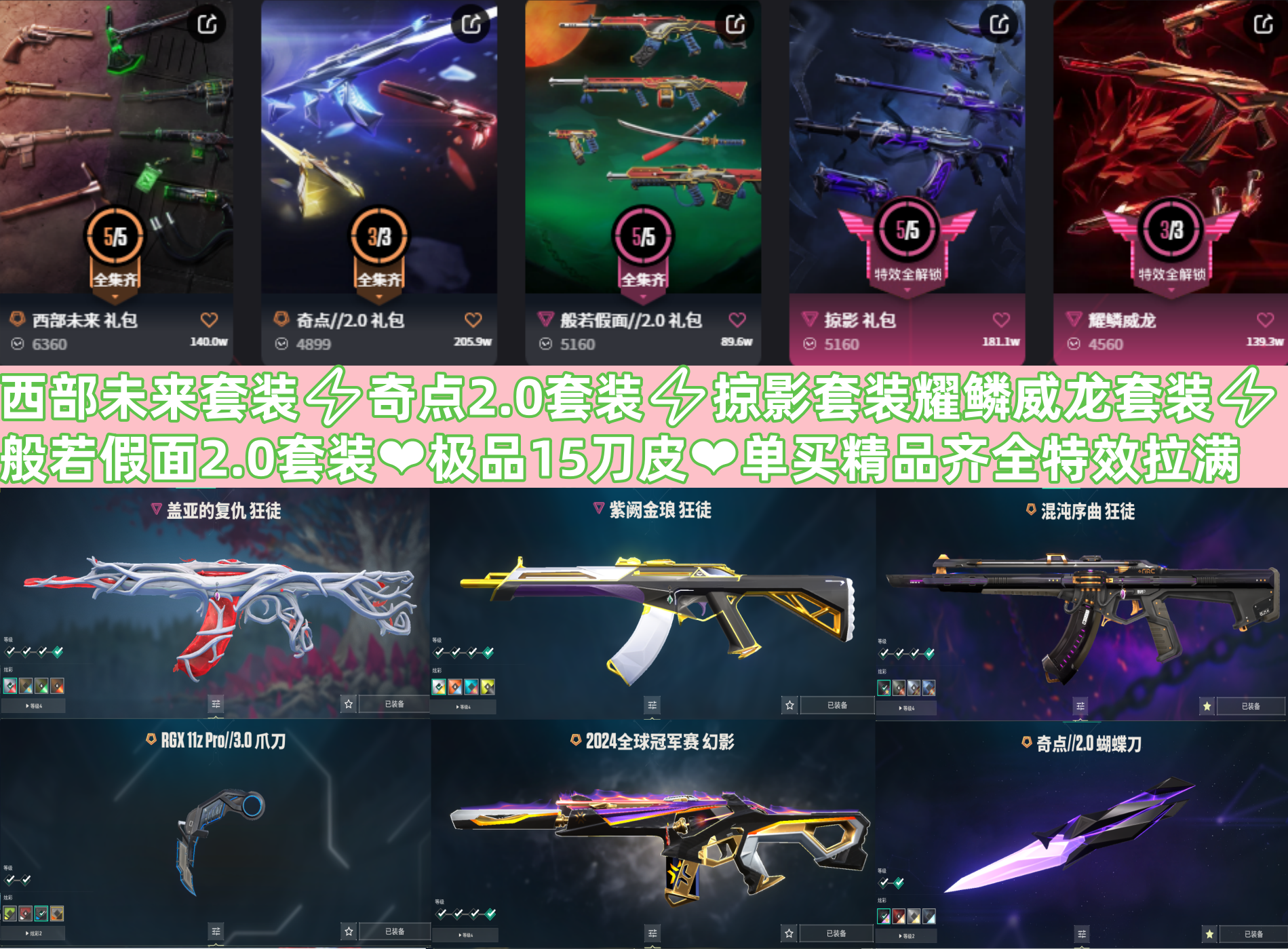 精氪毕业皮齐全⚡奇点西部般若掠影威龙套装⚡RGX紫金威龙鬼丸开拓者蝴蝶刀⚡混沌盖亚紫金狂徒⚡24幻影
