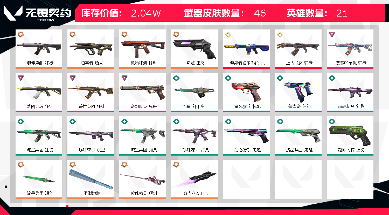 • 皮肤资产价值: 20360