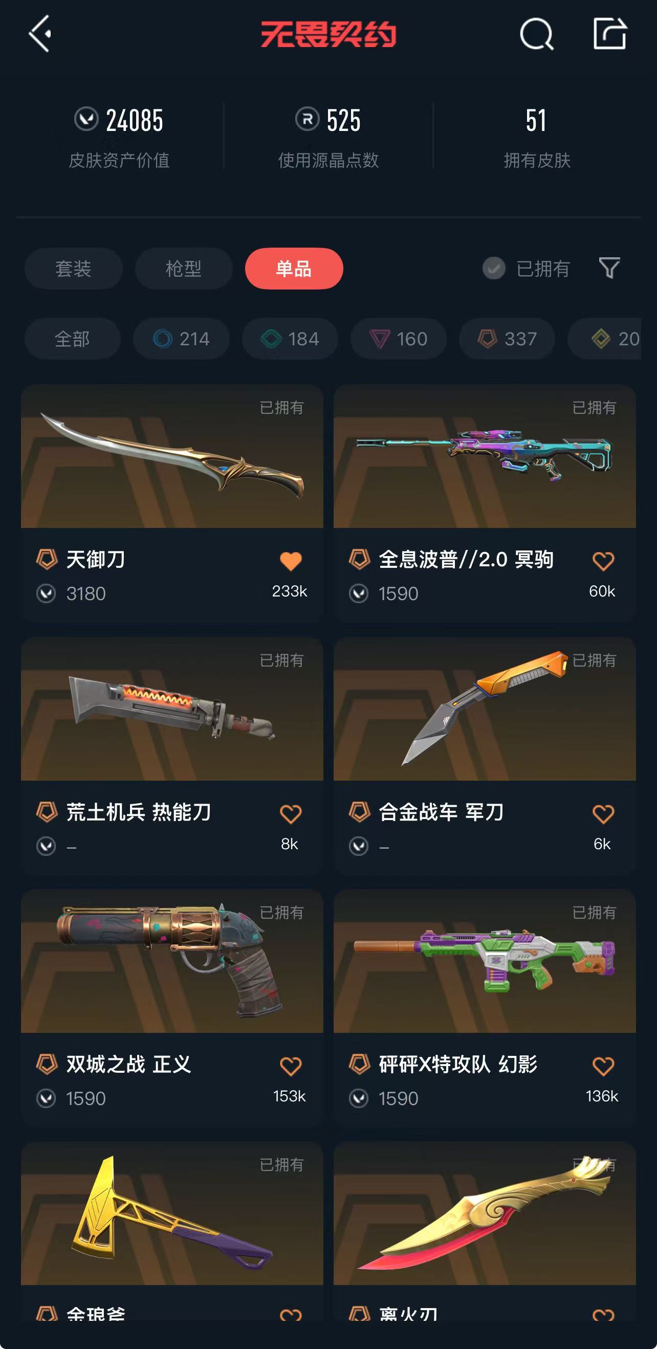 • 皮肤资产价值: 24085