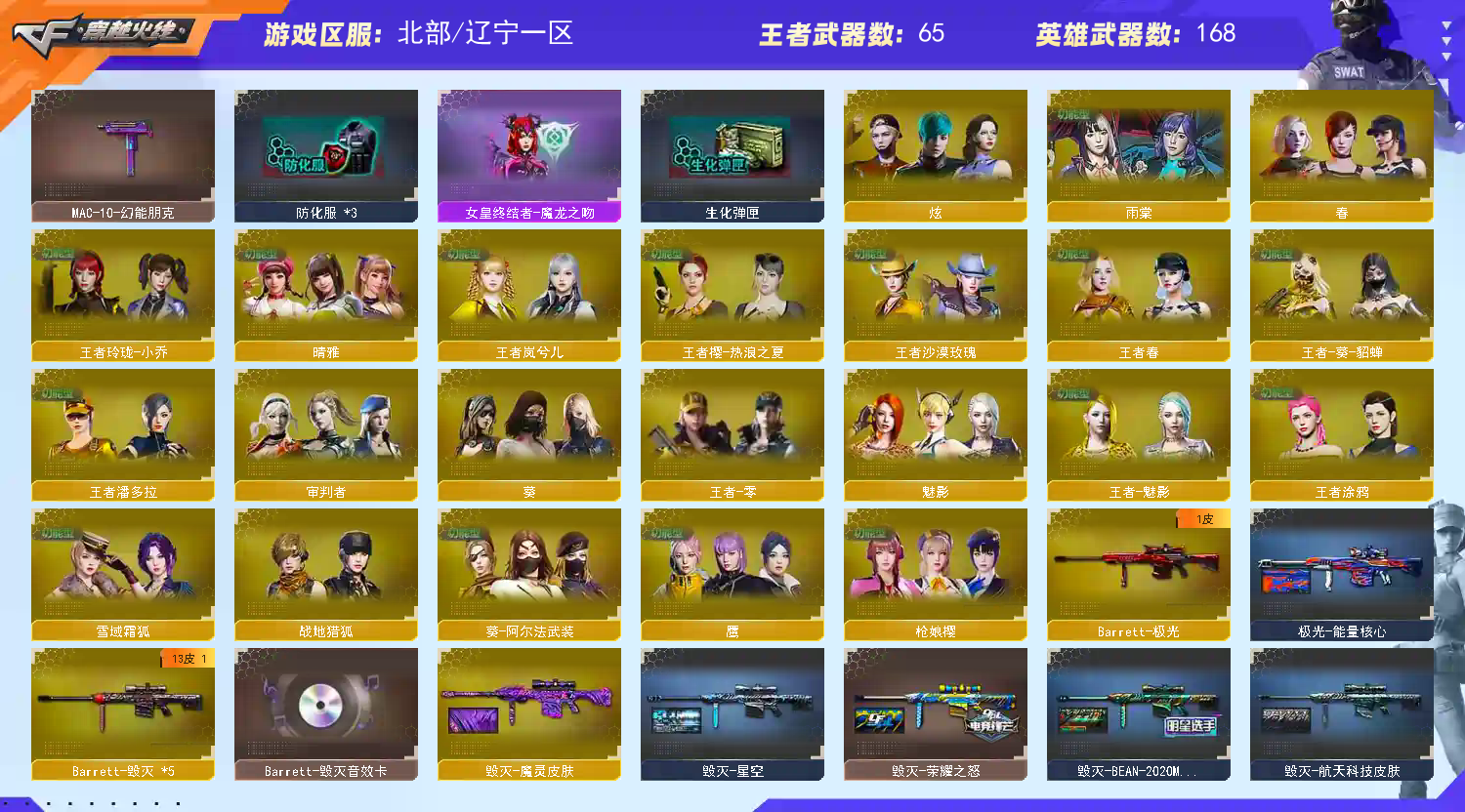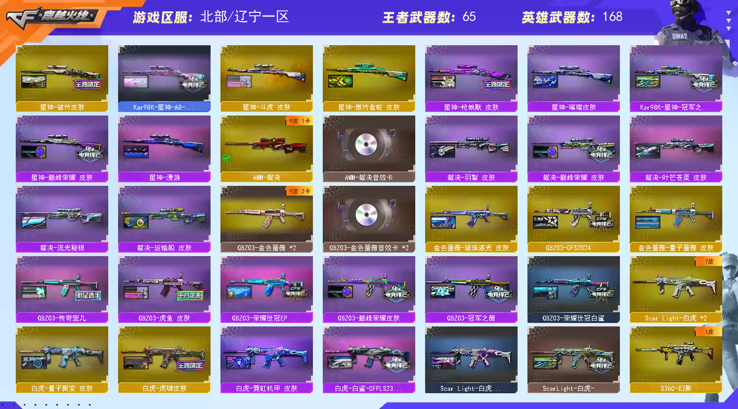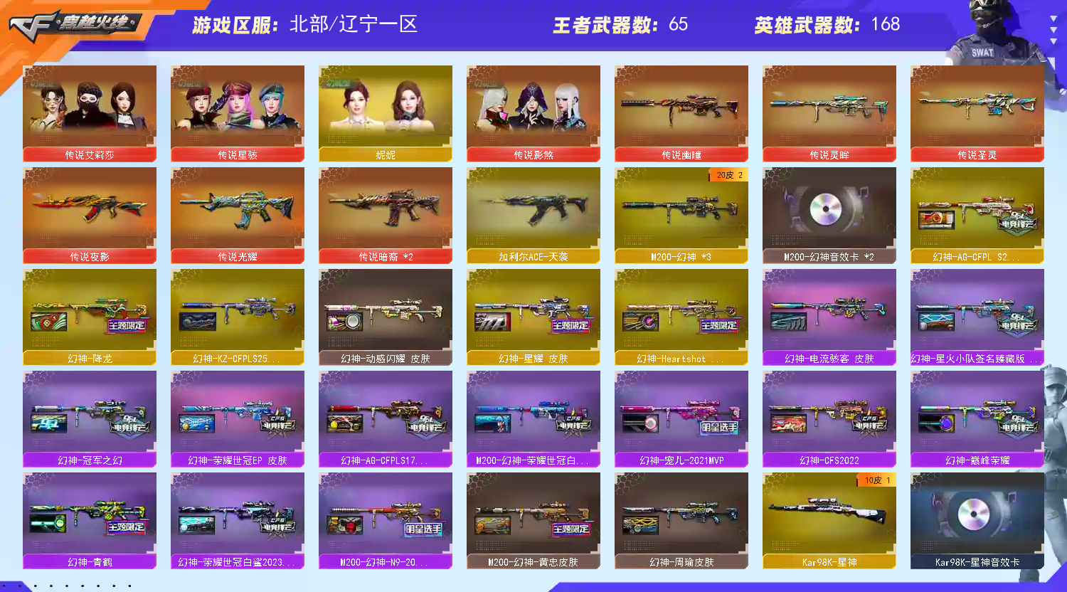 【商品标题】:北部辽宁一区-179V-可二次实名-【Lv.102.荣耀元帅】-【段位:荣耀之巅】 【稀有武器】:传说光耀/传说暗裔(2)/传说夜影/传说圣灵/传说灵眸/传说幽瞳/M200-幻神(3)/Kar98K-星神/ScarLight-白虎/M4A1-青龙/HK417-朱雀/M4A1-夜魔/AK47-雷暴/USP-雷暴/COP-堕天神/破空枪刃-夜魔/COP357-幻灵(2)/USP-神工天巧/天神-动感闪耀/COP357-云龙/柯尔特-荣耀世冠白鲨2023/柯尔特-无冕之王(2)/修罗-古蛇迷踪/荣耀世冠-柯尔特(3)/COP357-雷霆王者-觉醒版(3)/柯尔特-冠军之特(2)/金色蔷薇-古蛇迷踪/QBZ03-金色蔷薇(2)/AK47-火麒麟(7)/AK47-麒麟/M4A1-黑龙(3)/M4A1-雷神(5)/M4A1-黑骑士(2)/AK47-无影/荣耀世冠-火麒麟/荣耀世冠-雷神/白虎-电玩蓝兔/Barrett-毁灭(5)/Barrett-极光/AWM-裁决/加特林-炼狱(2)/炼狱-风暴/汤姆逊-烈龙(6)/AA-12-雷霆/炽芒蝶刃(2)/斩神刀-雷暴/马来剑-夜魔/幻灵之锋 【王者武器】:王者之心-觉醒版/王者之魄-觉醒版/M4A1-雷霆王者-觉醒版/王者之怒-觉醒版/王者之光-觉醒版/王者之力-觉醒版/王者之决-觉醒版/王者幻神-觉醒版/王者星神-觉醒版/王者玉锋 【热门角色】:传说艾莉莎/传说影煞/春/枪娘樱/晴雅/鹰/雨棠/炫/隼/魅影/奇洋探员/乔伊教练/蛇隐宗/王者春/王者-葵-貂蝉/王者-零/王者-魅影/王者玲珑-小乔/王者潘多拉/王者沙漠玫瑰/王者涂鸦/王者岚兮儿/空/灵狐者-职业经理/女主播/潘多拉-X/兔囡囡/幽/职业选手 【热门音效卡】:M200-幻神音效卡(2)/Kar98K-星神音效卡/AWM-裁决音效卡/QBZ03-金色蔷薇音效卡(2)/M4A1-雷神音效卡/Barrett-毁灭音效卡/M4A1-黑骑士音效卡/AK47-火麒麟音效卡/M4A1-黑龙音效卡 【热门皮肤】:幻神-AG-CFPLS24冠军皮肤/幻神-Heartshot皮肤/幻神-星耀皮肤/M200-幻神-N9-2022MVP/幻神-荣耀世冠白鲨2023皮肤/幻神-宠儿-2021MVP/幻神-星火小队签名臻藏版皮肤/M200-幻神-荣耀世冠白鲨/幻神-AG-CFPLS17冠军/幻神-冠军之幻/幻神-巅峰荣耀/幻神-CFS2022/幻神-电流骇客皮肤/幻神-周瑜皮肤/幻神-动感闪耀皮肤/幻神-降龙/幻神-青鹤/白虎-白鲨-CFPLS23冠军/裁决-巅峰荣耀皮肤/龙啸-巅峰荣耀皮肤/QBZ03-CFS2024皮肤/金色蔷薇-破浪逐光皮肤/裁决-异化之源皮肤/白虎-虎啸皮肤/星神-破竹皮肤/毁灭-HeartShot皮肤/擎天-傲竹金蛇皮肤/星神-傲竹金蛇皮肤/金色蔷薇-量子蔷薇皮肤/星神-漫游/炼狱-末日审判皮肤/QBZ03-传奇宠儿/屠龙-星火燎原/雷神-刘备 皮肤/M4A1-雷神-巅峰荣耀皮肤/QBZ03-巅峰荣耀皮肤/裁决-羽掣皮肤/Kar98K-星神-冠军之星皮肤/火麒麟-荣耀世冠AG/雷神-R.LGD-CFPLS18冠军/屠龙-荣耀世冠AG(2)/雷神-荣耀世冠AG(2)/擎天-冠军之击/星神-巅峰荣耀 皮肤/火麒麟-巅峰荣耀/QBZ03-冠军之薇/星神-枪娘默 皮肤/白虎-霓虹机甲 皮肤/屠龙-破浪逐光皮肤(2)/炼狱-电子连击皮肤/星神-璀璨皮肤/裁决-流光秘银/黑龙-冠军之武/火麒麟-大唐荣光/炽芒蝶刃-破浪逐光皮肤/毁灭-直播专属/传奇石头-横秒之巅/毁灭-BEAN-2020MVP/QBZ03-荣耀世冠白鲨/毁灭-战神张飞/雷神-宠儿-2019MVP/雷神-传奇N9/火麒麟-虎牙平台皮肤/AK47-火麒麟-传奇EVEN/ScarLight-白虎-暗星/炽芒蝶刃-荣耀世冠白鲨2023皮肤/ScarLight-白虎-冠军之虎皮肤/火麒麟-冠军之心/毁灭-冠军之怒/黑骑士-AG-S4冠军典藏/火麒麟-斗鱼平台皮肤/M4A1-雷神-CFS2019/屠龙-荣耀之锋(2)/雷神-斗鱼平台皮肤/毁灭-荣耀之怒/屠龙-春桃皮肤/雷神-冠军之魄/炽芒蝶刃-冠军炽芒皮肤/雷神-荣耀之魄 【其他亮点】:斯泰尔-蝴蝶/炼狱-迷你小钢/Knife-冠军之刃(2)/柯尔特-赛博朋克(2)/毒蜂/VEPR-12-金魔/迷你律动酷熊/贝雷塔687-射手座/黄金猫猫手套-白鲨/金刚伞-电玩红兔/烟雾弹-荣耀世冠白鲨2023(2)/哔哩哔哩名片/超核名片/超核名片 (截图展示段位不代表实际段位,如赛季更新等不可抗拒因素发生变化,其余道具看截图或咨询客服);USP-雷暴,柯尔特-无冕之王,荣耀世冠-柯尔特,柯尔特-荣耀世冠白鲨2023,柯尔特-冠军之特,炽芒蝶刃,Knife-冠军之刃,