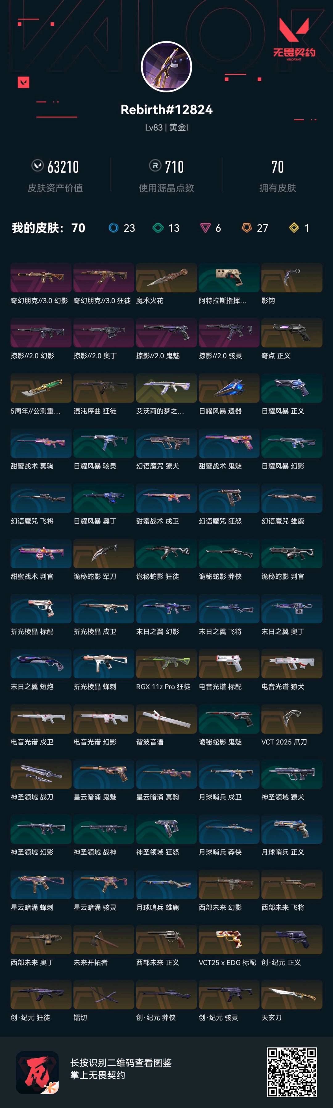 可排位;西部未来 奥丁,5周年//公测重制版 苍龙之刃,镭切,VCT 2025 爪刀,RGX 11z Pro 狂徒,混沌序曲 狂徒,西部未来 飞将,