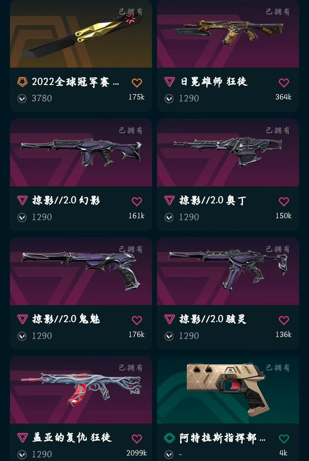冻结秒解✨22冠军套✨掠影2.0套✨影钩✨22冠军蝴蝶刀✨日冕雄狮狂徒✨盖亚的复仇狂徒